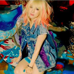 Sa vidéo est très coloré, et souligne  le rose dans ses cheveux. Elle est représentée portant une veste en jean, assise sur le sol au milieu d’une variété d’objets disposé autour d’elle (dont des objets à motifs léopard, diverses plumes bleues, et un cheval de bois).