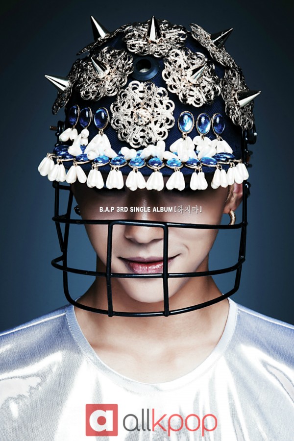 Le groupe coréen B.A.P sortira son troisième single le 23 octobre sous le nom de ‘하지마’ qui signifie ‘Ne fais pas ça’. Voici les premières photos teasers avec le leader Yongguk, qui porte un casque de viking mélangé à un casque de hokey, et Daehyun, qui lui s’est habillé en boxer :