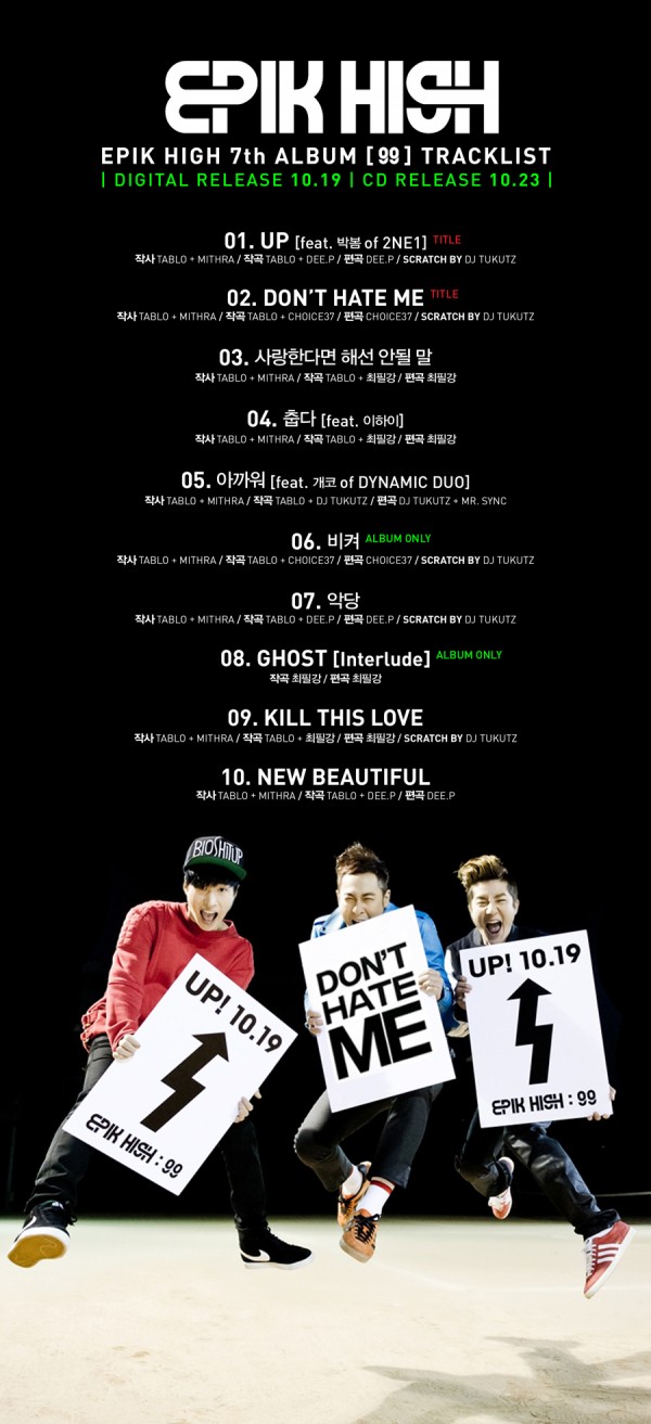 YG Entertainment vient de mettre en ligne une nouvelle photo teaser pour le retour des EPIK HIGH ! Ainsi, nous découvrons que leur nouvel album s’intitulera ’99’ et qu’il contiendra 10 chansons dont le featuring avec Lee Hi, et le featuring avec BOM des 2NE1.