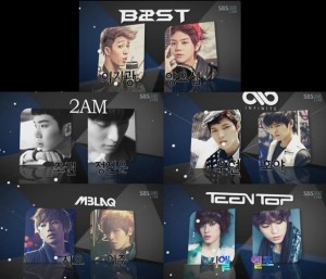 Jokwon et Jung Jinwoon (2AM), G.O et Lee Joon (MBLAQ), Woohyun et Hoya (INFINITE), Niel et L.Joe (Teen Top), Gikwang et yoseob (Beast) vont participer à un nouveau projet pour la chaîne SBS !