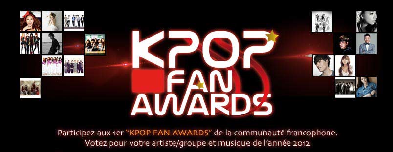 La communauté francophone est appelée à voter pour ses artistes/groupes et musiques Kpop de l’année 2012 pour les 1er KPOP FAN AWARDS 2012, organisé par la chaîne GONG TV.