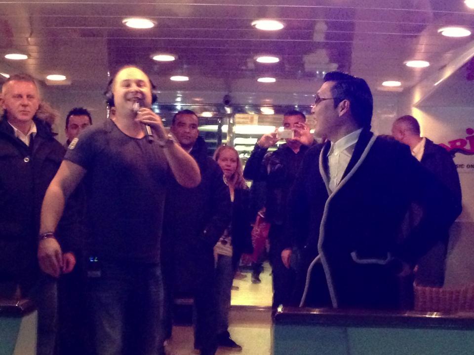 PSY, qui était aux NRJ MUSIC AWARD 2013 hier, était également l’invité de Cauet vendredi soir sur son yatch et en direct à la radio !