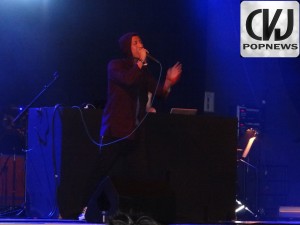 Voici quelques photos de sa performance (je m’excuse si les photos ne sont pas très réussi, j’étais en plein devant un poteau et complètement à gauche de la salle au fond) :