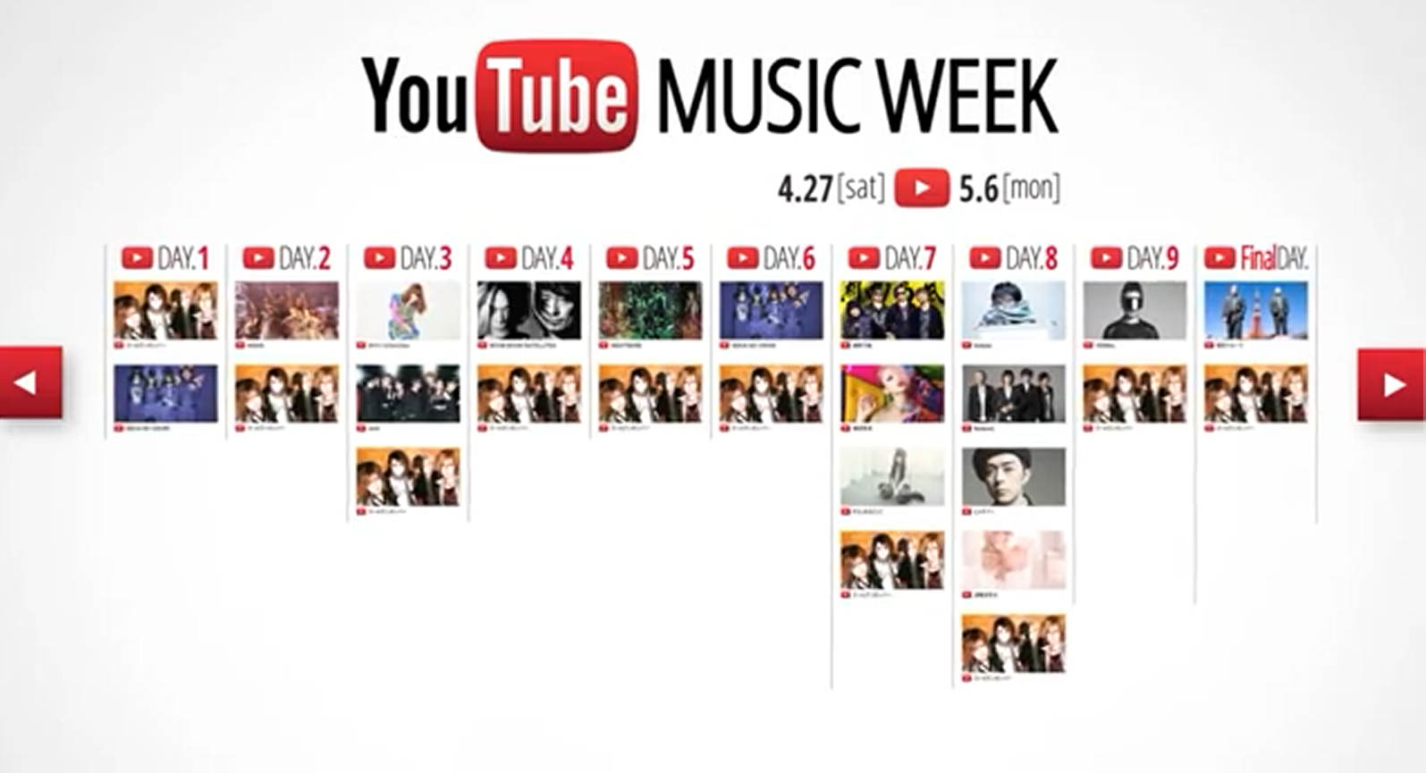 Une Youtube Music Week spécial Japon vient d’être annoncé ! Elle se déroulera en direct du Tokyo Budokan sur Youtube du 27 avril au 6 mai. De très nombreux artistes seront présents dont : Ayumi Hamasaki, VERBAL des M-Flo, Kyary Pamyu Pamyu, AAA, AKB48 et Koda Kumi.