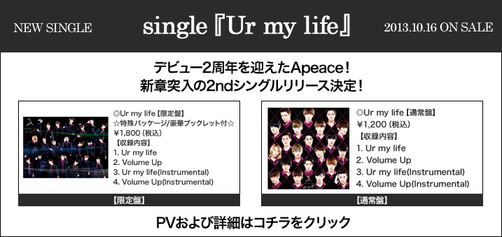Après un an d’absence, le groupe coréen A-PEACE vient d’annoncer la sortie d’un nouveau single japonais intitulé “Ur My Life” pour le 16 octobre.