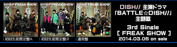Le groupe japonais DISH// sortira son troisième single en major chez Sony Music Records le 5 mars. Il s’intitulera «FREAK SHOW »’ et contiendra deux nouvelles chansons.