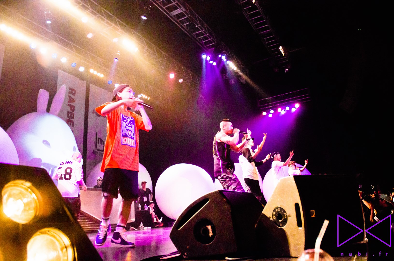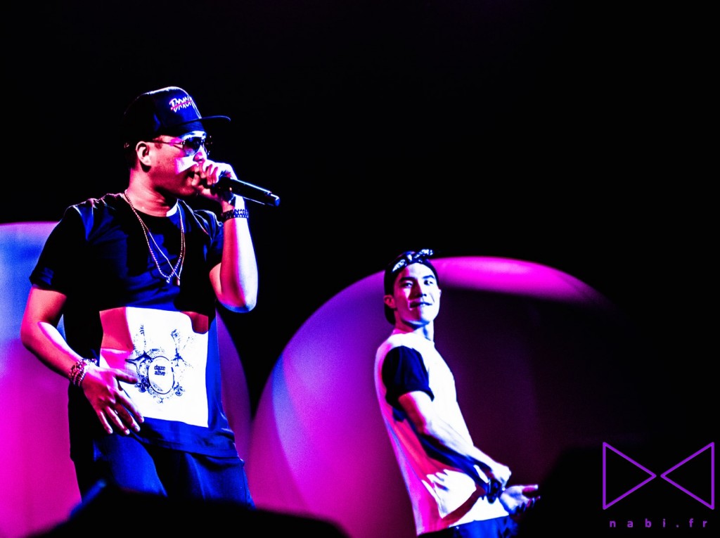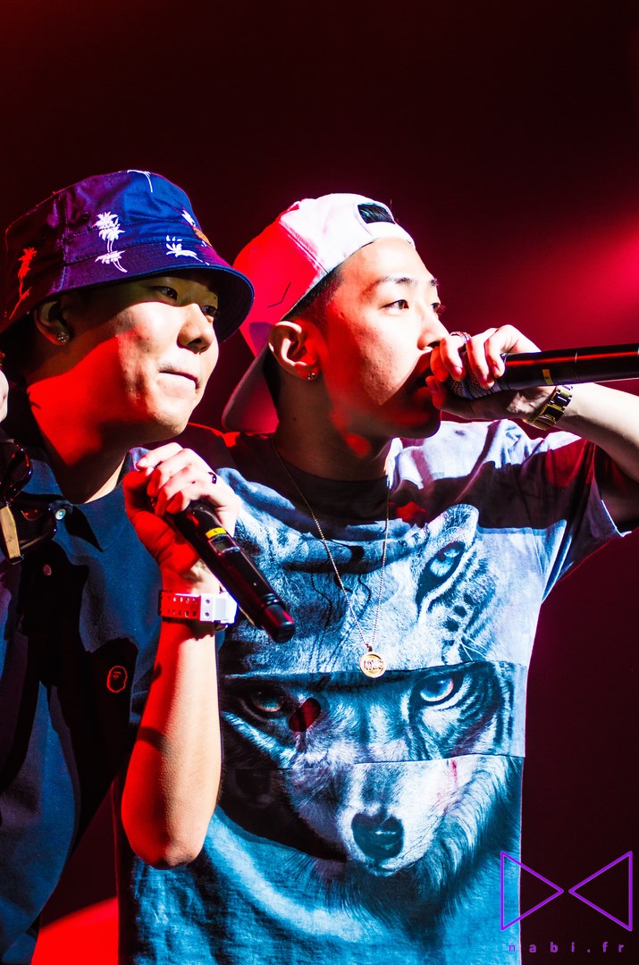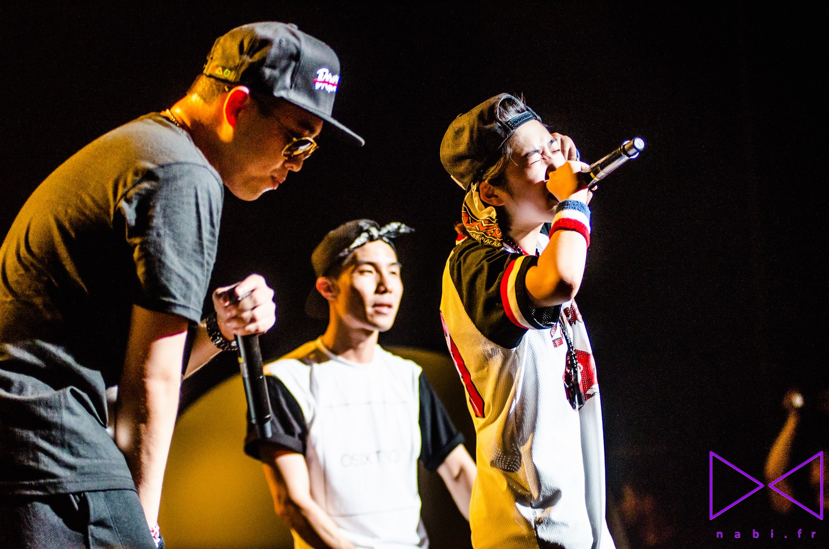 Il est vrai que l’on se trouvait dans un concert hip-hop mais le jeu de décor avec des énormes bulles translucides, rendaient le jeu de lumière et de projection très intéressant et totalement inédit. Plus le lapin au centre de la scène qui changeait d’expression au fil des performances. D’ailleurs Deepflow qui passait dans les premiers n’a pas manqué de lancer un petit « Tokki anhyeong » à son arrivée sur scène.
