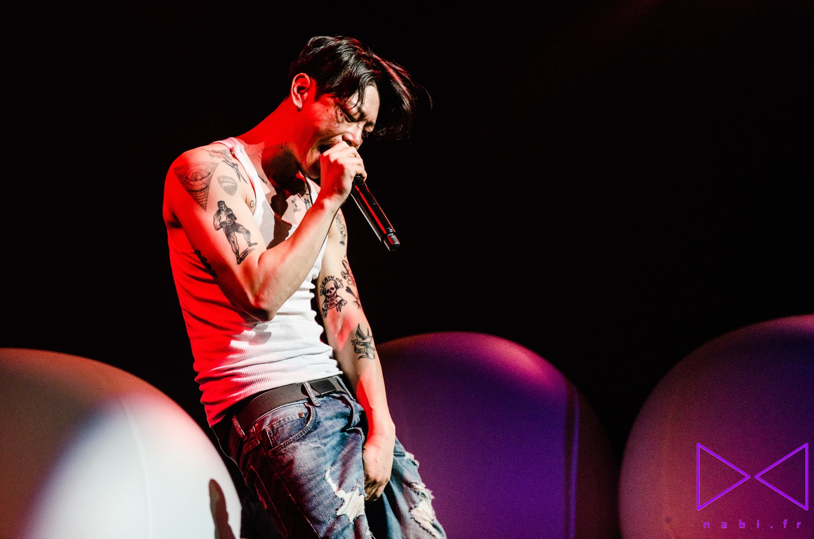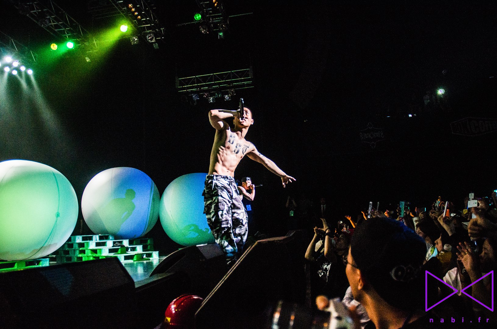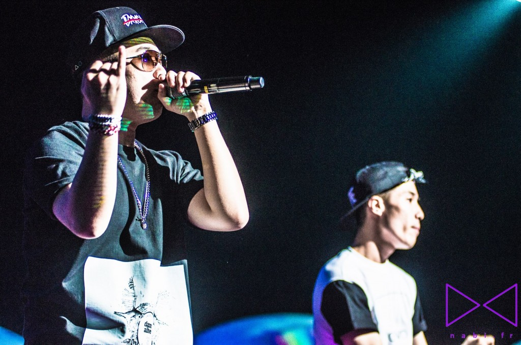 Il est vrai que l’on se trouvait dans un concert hip-hop mais le jeu de décor avec des énormes bulles translucides, rendaient le jeu de lumière et de projection très intéressant et totalement inédit. Plus le lapin au centre de la scène qui changeait d’expression au fil des performances. D’ailleurs Deepflow qui passait dans les premiers n’a pas manqué de lancer un petit « Tokki anhyeong » à son arrivée sur scène.