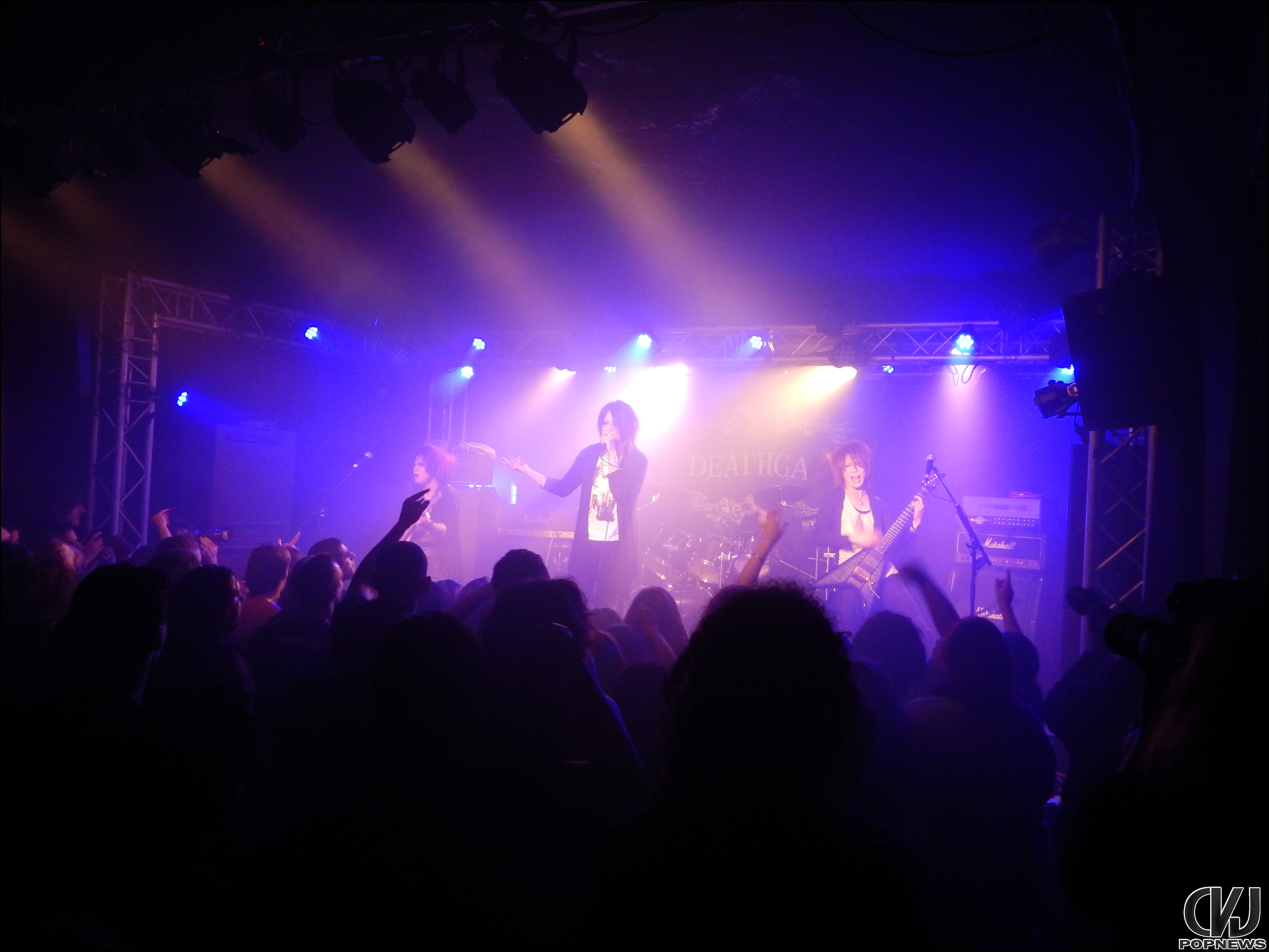 Les fans se sont mis à crier « Deathgaze ! Deathgaze ! » pour faire venir le groupe japonais sur scène. Les musiciens ont alors fait leur entrée, suivis du chanteur, Ai, qui à peine arrivé était déjà en train de chanter ! Il y avait donc toute suite une bonne ambiance dans la salle.