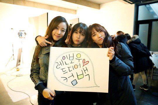 L’attente fut longue pour les fans ! Rainbow vient finalement d’annoncer son retour après 1 an 7 mois d’absence ! L’annonce a été faite à travers une image avec Woori,Jisook, & Hyunyoung qui tiennent une pancarte qui dit ‘Rainbow Finally Comeback.’