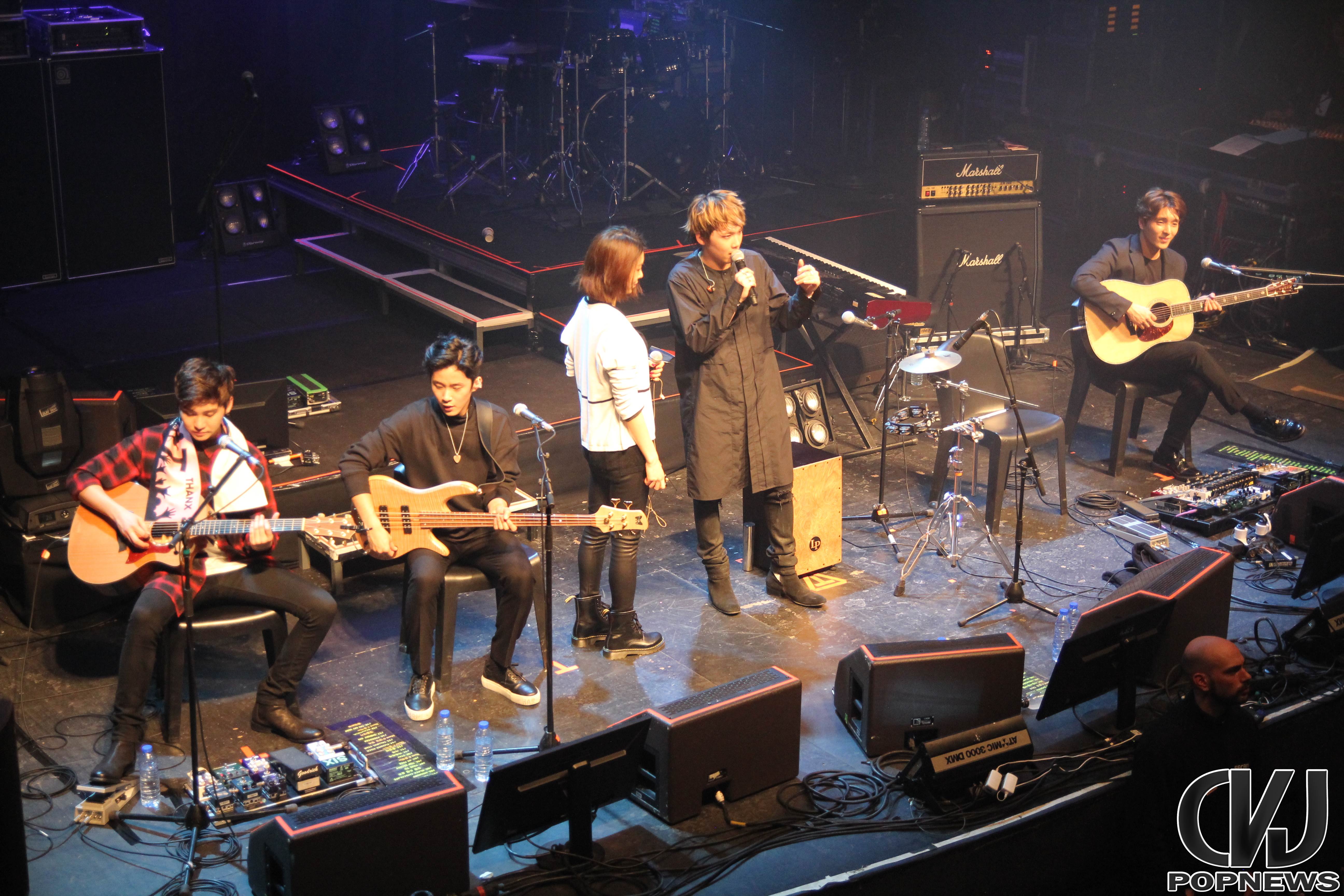 La partie acoustique du concert a été rythmée par les voix des Primadonnas et de Hongki. Le groupe restait en admiration devant le fait que leur public connaissaient toutes les chansons sans exception. Cet instant est certainement le moment ancré dans les mémoires, en tout cas dans la mienne. Il restera le pic de cette soirée. C’était une réelle harmonie entre le groupe et leur fans. Malgré la distance et la barrière de la langue ils pouvaient communiquer ensemble à travers leur chansons.