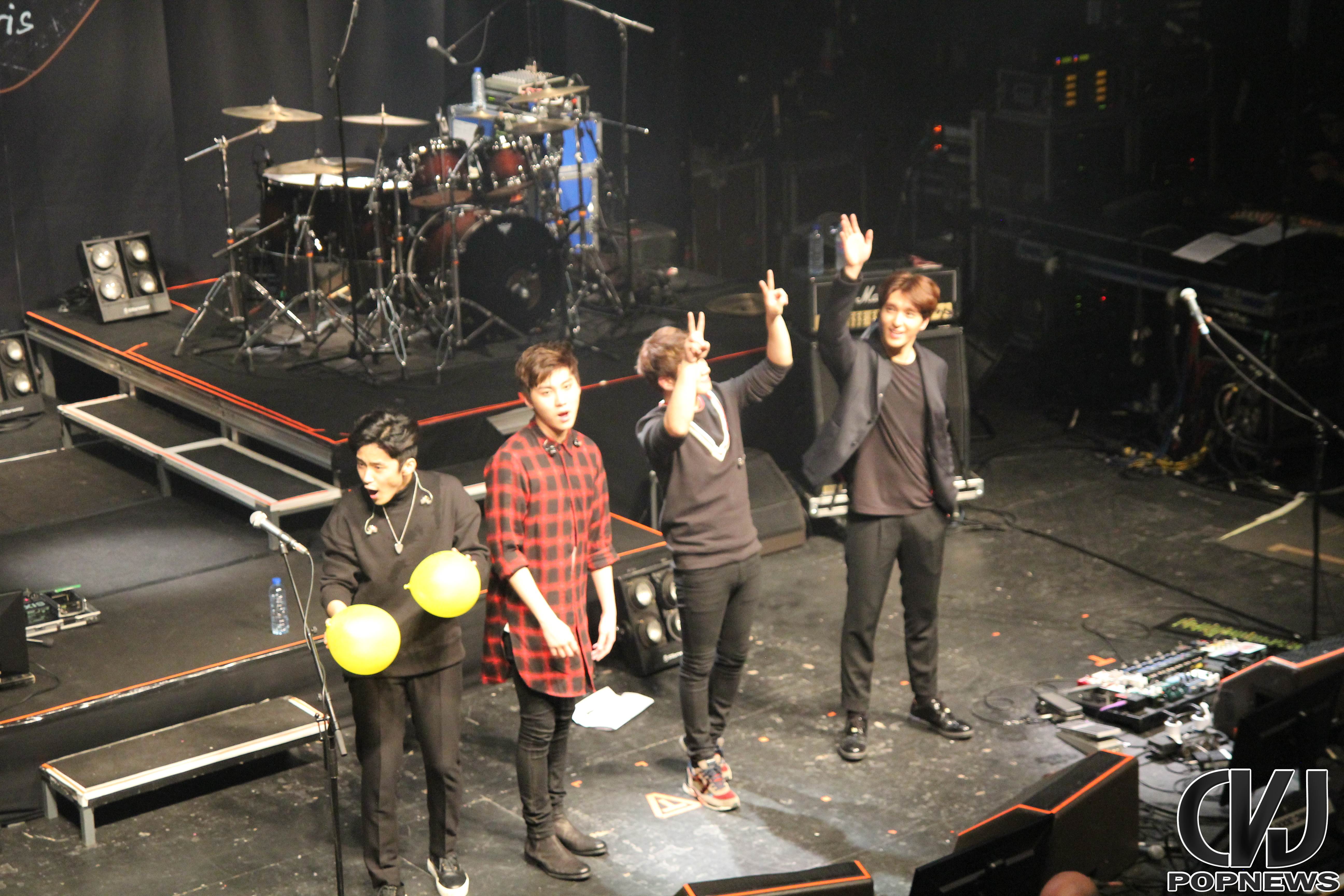 Après quelques morceaux le groupe prit une pause pour adresser quelques mots à leur Primadonnas français. Avec l’aide d’une amie de Hongki il a pu transmettre ses impressions à ses fans et leur a expliqué que cette tournée était un très grand challenge.