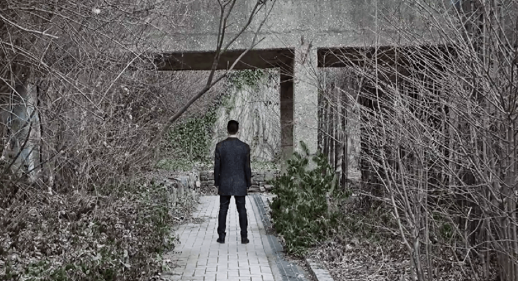 Debout, face à la caméra, Yang Da Il semble mystérieux dans une veste de costume gris et un jean noir. La scène change autour de lui, révélant des scènes d’un parc à l’abandon, de monuments historiques coréens, de plantes verdoyantes entourant une passerelle en bois, et divers autres endroits extravagants en Corée.