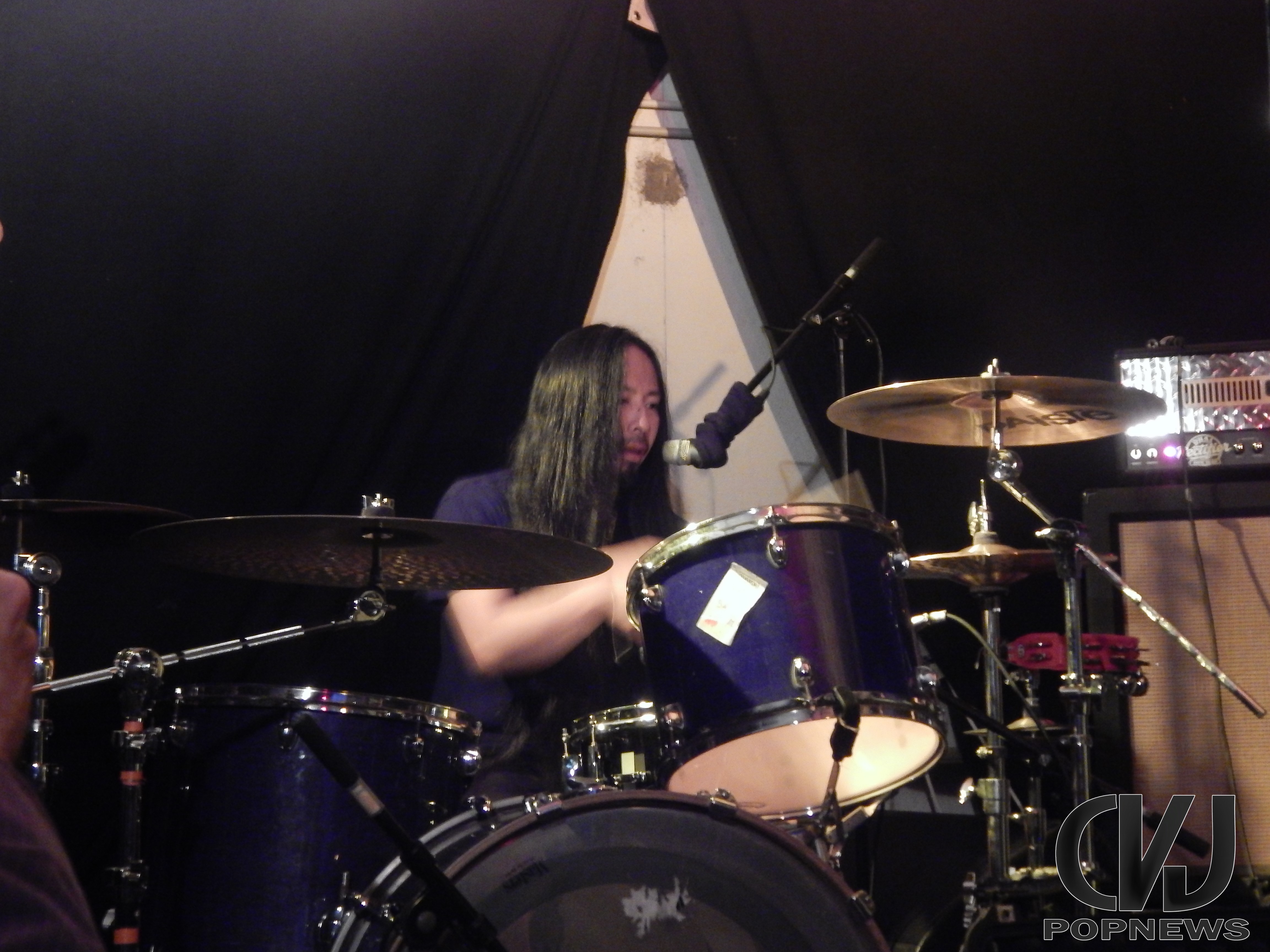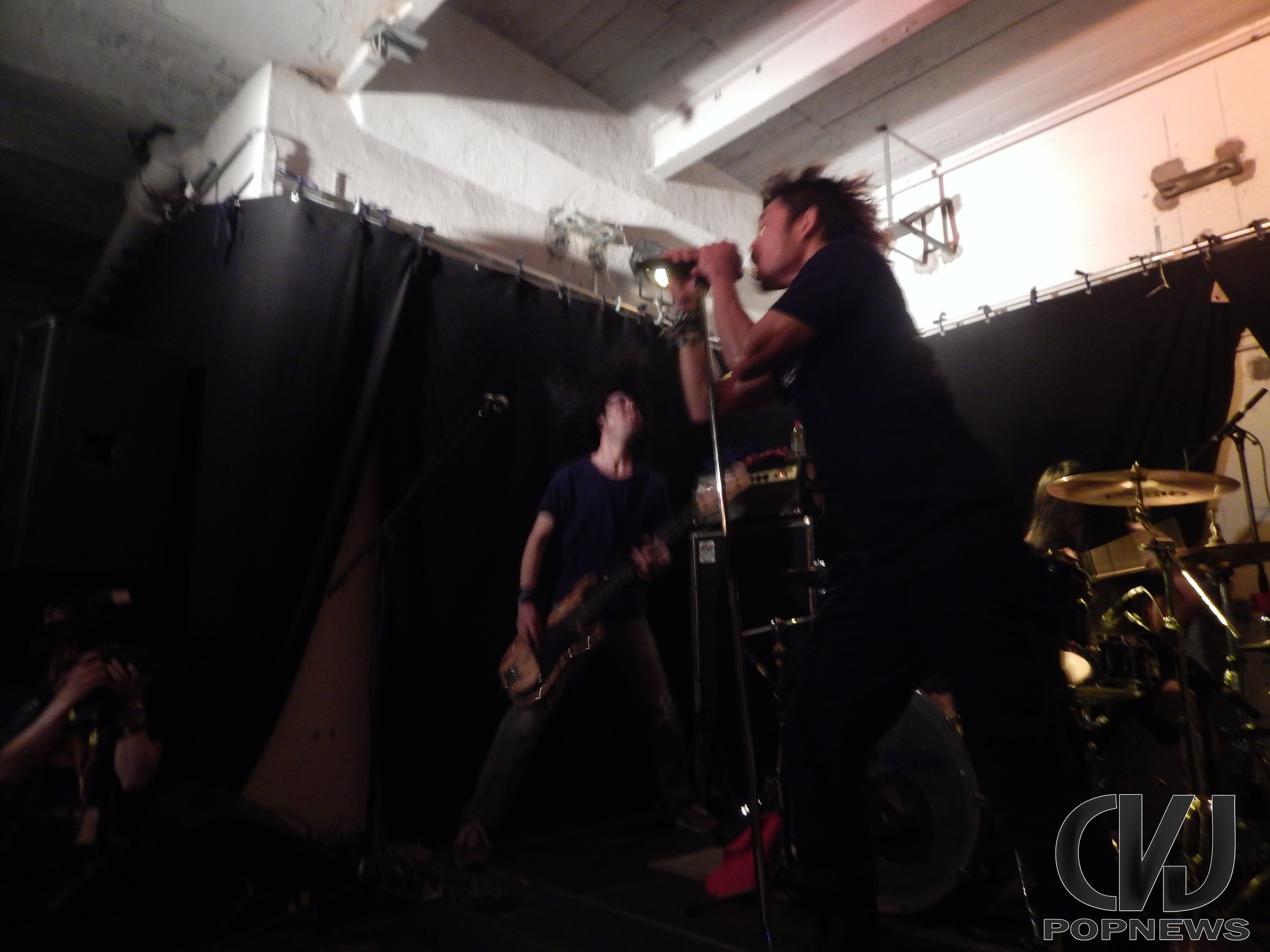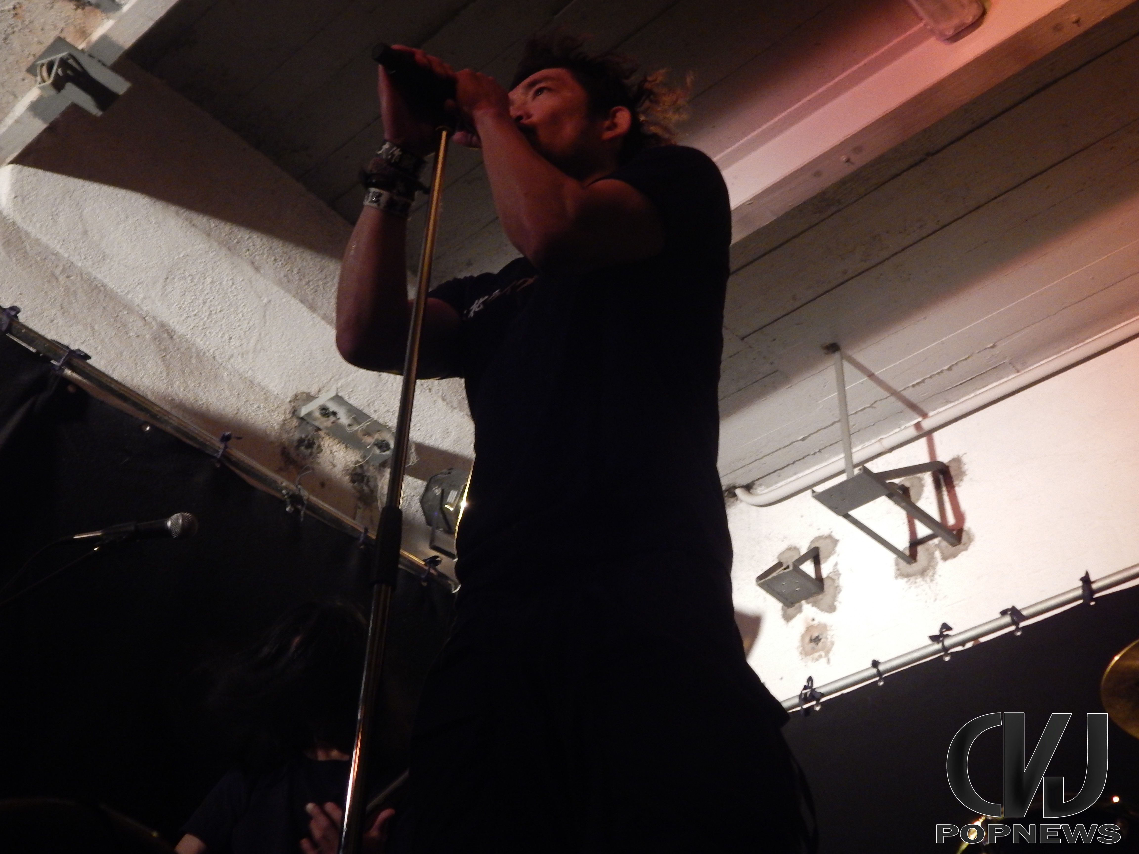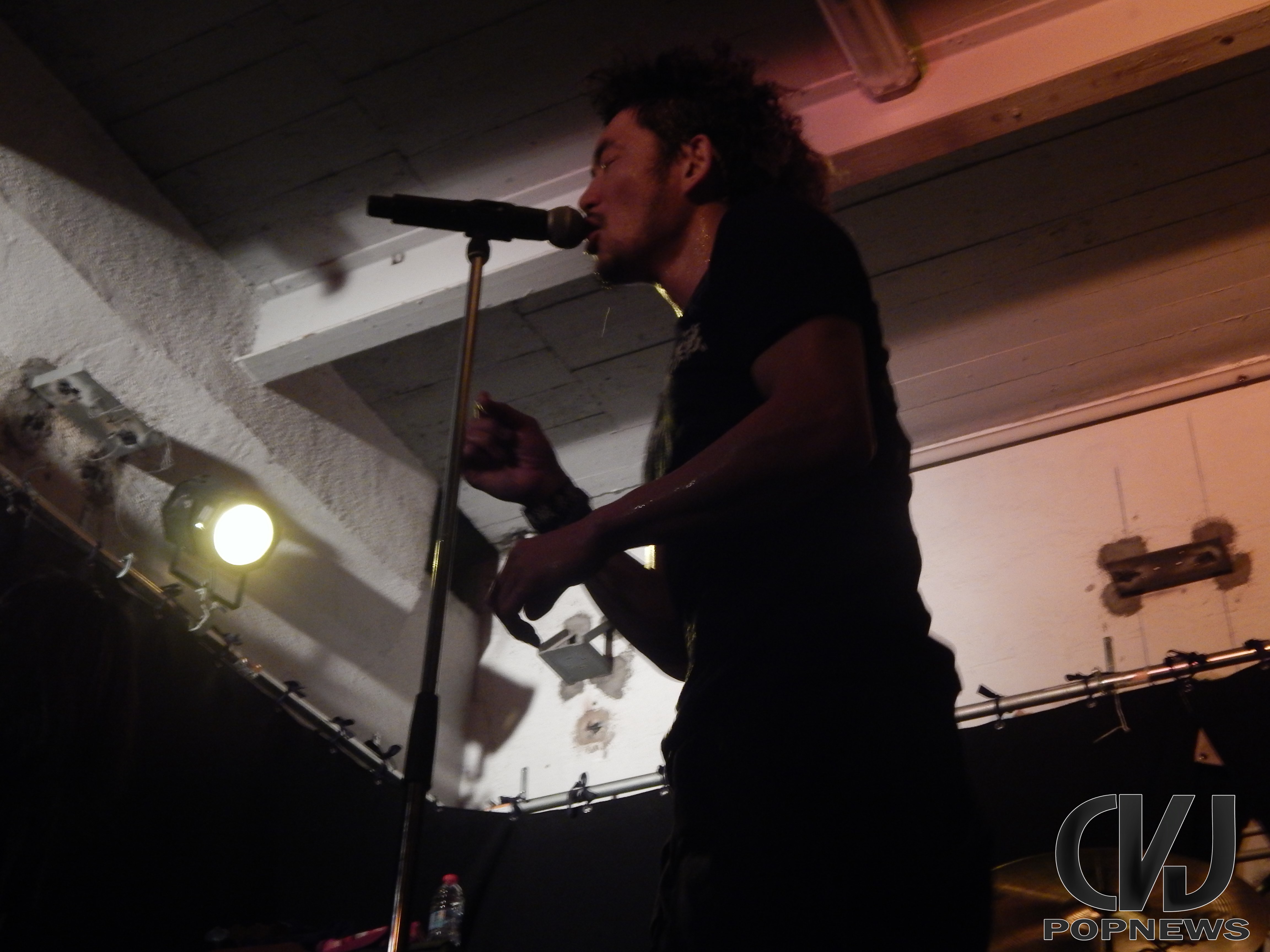 Le chanteur bougeait beaucoup, sautant lui aussi beaucoup comme l’ont fait les membres de Locofrank un peu plus tôt. Il y avait d’ailleurs un membre du staff japonais sur le côté droit de la scène à côté du bassiste, qui remettait les micros correctement et surveillait les câbles.