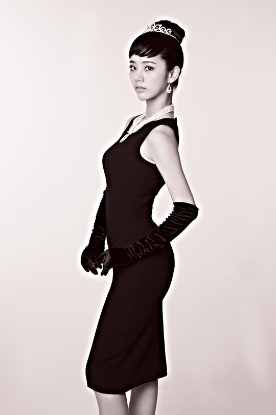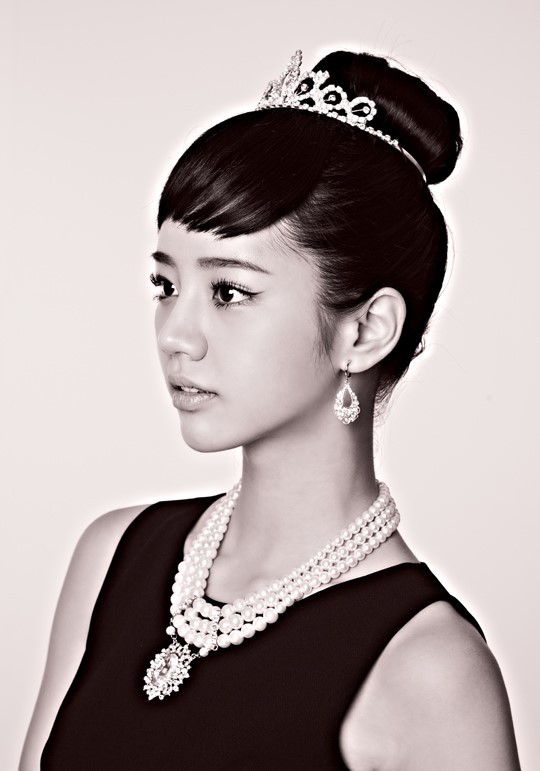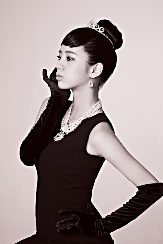 Hyeri,en Audrey Hepburn avec sa coiffure, et ses bijoux.