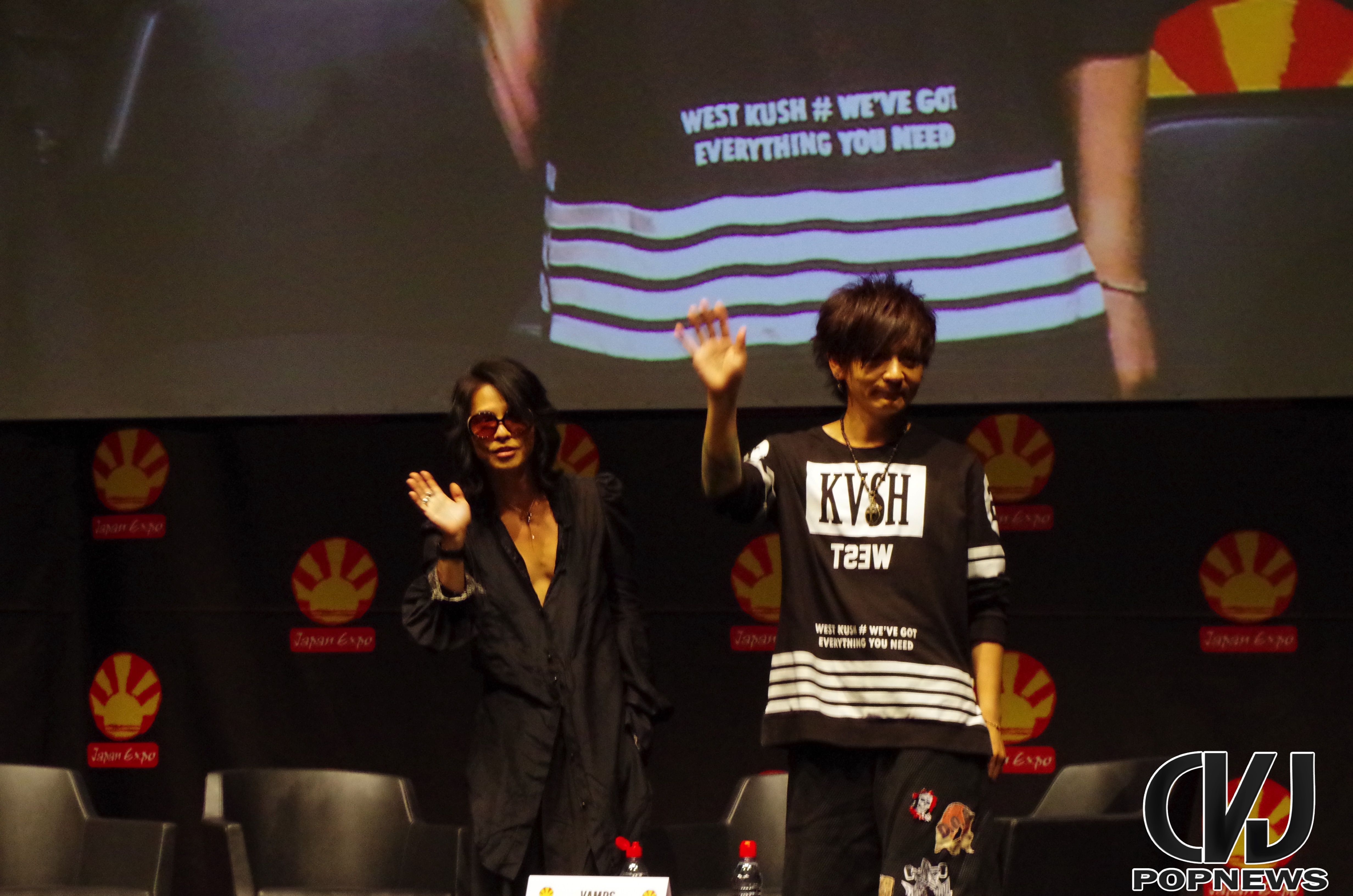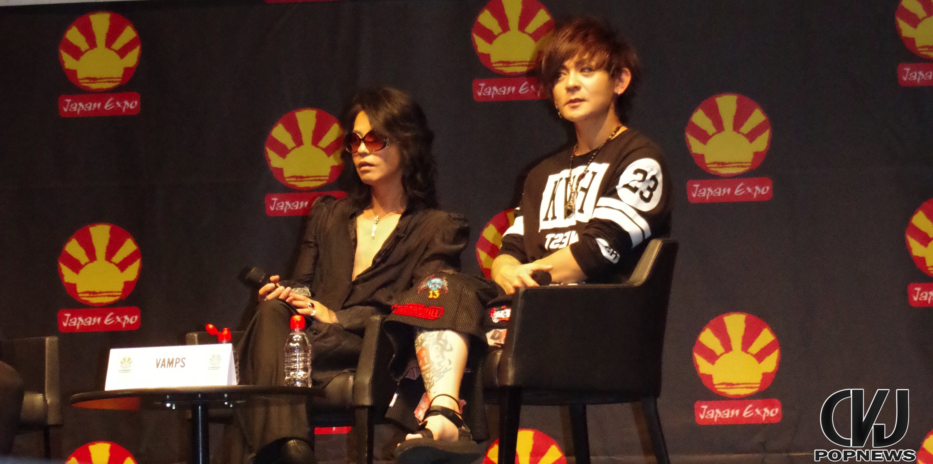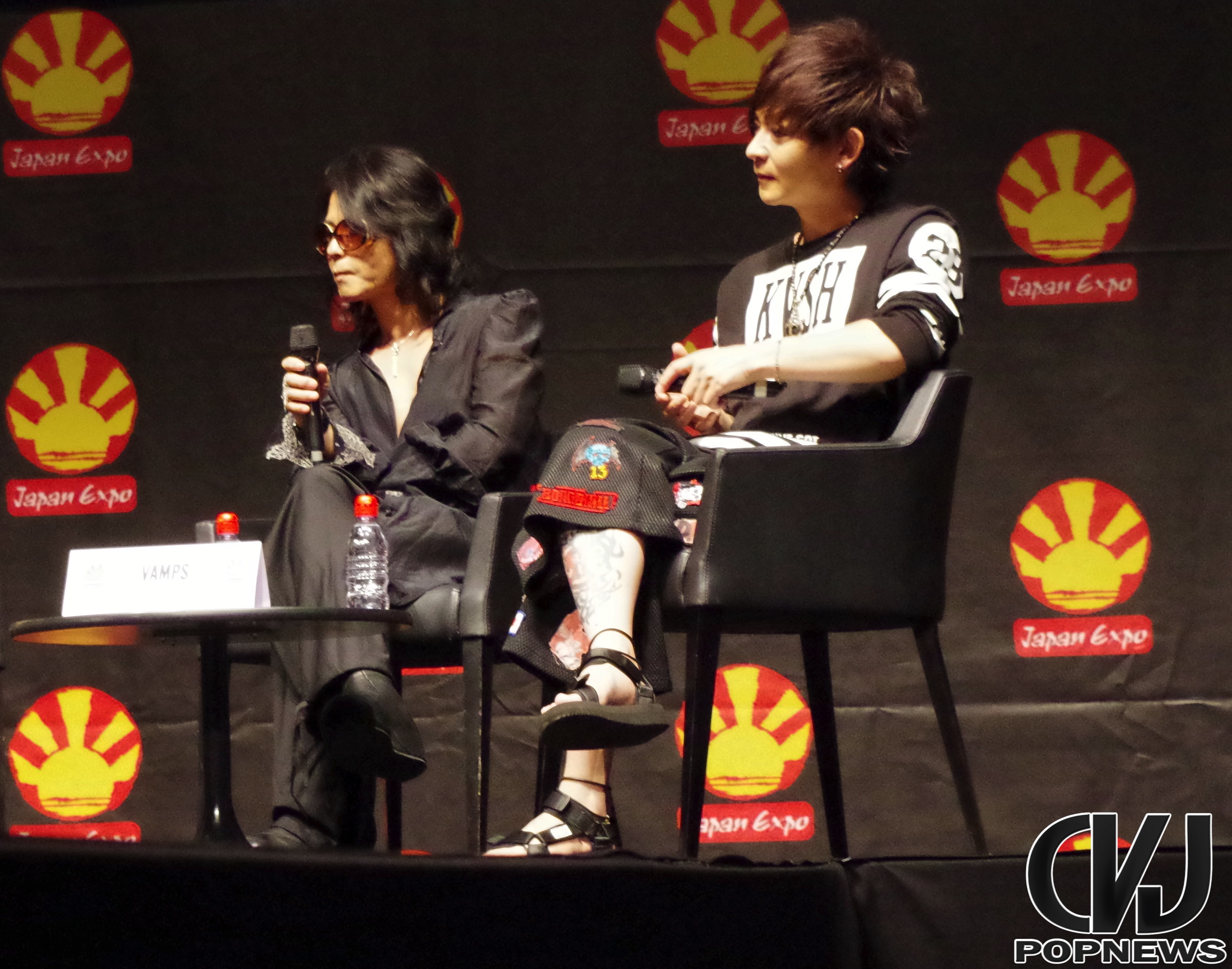 Comme vous le savez, le groupe de rock VAMPS faisait partie des quatre invités d’honneur du festival Japan Expo cette année. C’était donc dans la catégorie “musique” le groupe le plus attendu, et notamment pur le public, même si ce n’était pas la première fois que le groupe passait nos frontières pour se produire dans la capitale. Leur dernier show en France remonte à 2013, et l’accessibilité de la Japan Expo a convaincu plus d’une personne de faire le déplacement sur le festival pour venir admirer les performances de ce groupe mythique. VAMPS a aussi tenu une conférence de presse le jeudi 2 juillet, durant laquelle Hyde et K.A.Z ont pu répondre aux questions du présentateur ainsi qu’à certaines questions du public sur la fin. Pour les plus passionnés, des séances de dédicaces ont aussi été mises en place durant trois jours du festival.
