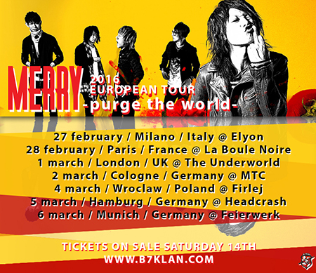 Le concert du groupe japonais MERRY, prévu initialement à la Boule Noire de Paris pour le 28 février, vient d’être annulé et reporté. Selon B7Klan, les organisateurs de la tournée européenne, une date parisienne ainsi que le reste de la tournée seront reprogrammés, certainement courant 2017, mais rien n’est encore assuré !