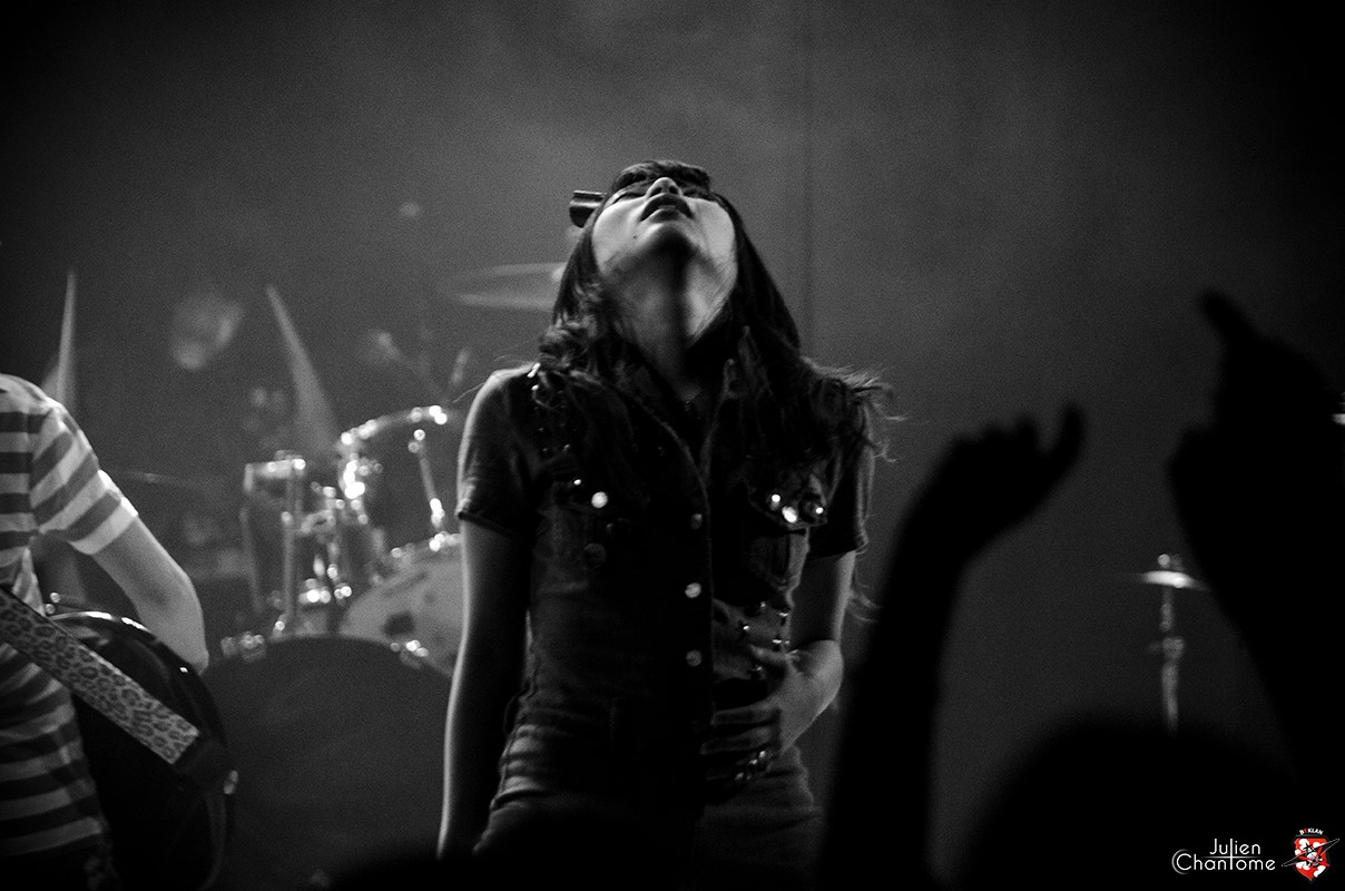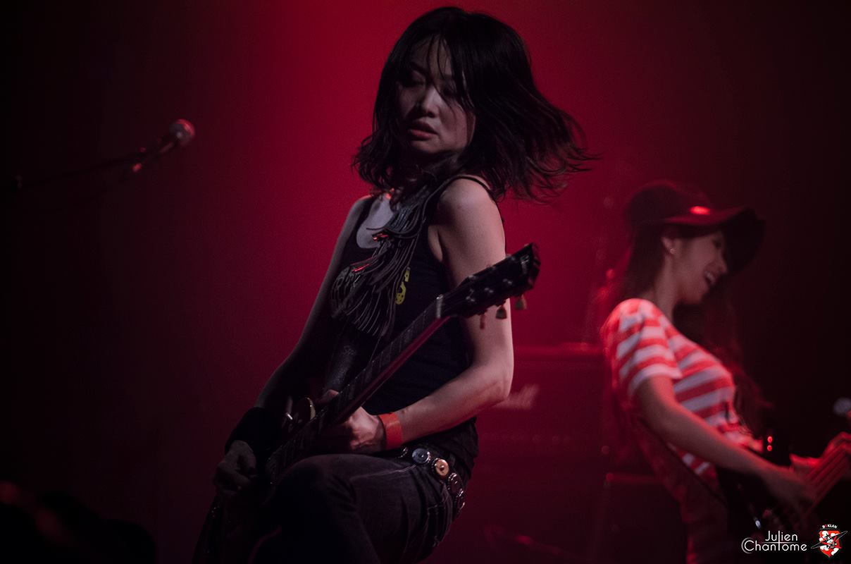 En France, nous voyons rarement des groupes de J-Rock féminins en concert, leur entrée sur scène était donc d’autant plus surprenante. Une fois la première chanson écoutée, c’est plutôt une agréable surprise qui s’offre à nous. Pour un groupe qui fait du rock, elles savent ce qu’elles font, ce qu’elles veulent et qu’elles sont là pour s’amuser. En réponse à cette aura d’énergie, le public s’échauffe rapidement pour profiter de la musique et du groupe qui nous explique ensuite que malgré les différences apparentes entre les deux groupes, leur maison de production est commune. C’est donc pour cette raison qu’elles ont eu la possibilité de faire la première partie des concerts de cette tournée.