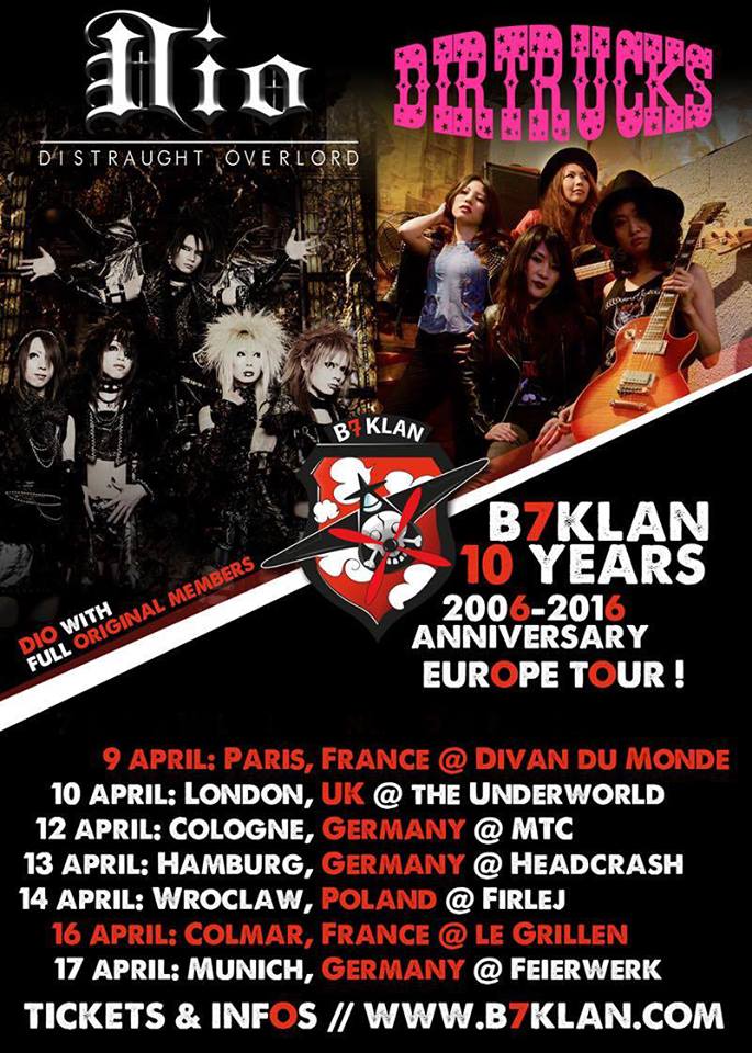 Un grand merci à B7Klan qui a organisé cette merveilleuse soirée et joyeux 10ème anniversaire ! Merci infiniment aux deux groupes, Dio et Dirtrucks, qui étaient présents sur la scène du Divan du Monde ce soir-là pour donner un spectacle des plus agréables.