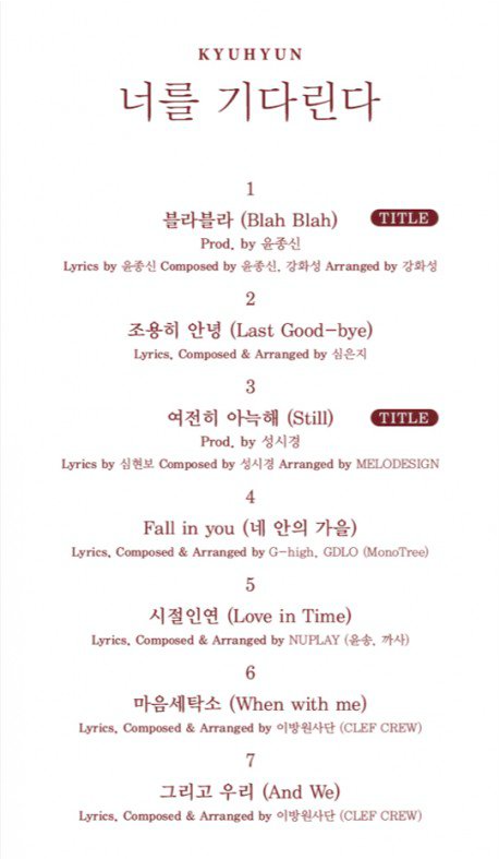 ‘Waiting For You’ contiendra donc 7 titres, dont deux singles dont il fera la promotion, à savoir ‘Blah Blah‘ et ‘Still‘. Cet album aura un sens tout particulier pour le chanteur, puisqu’il a travaillé avec Sung Si Kyung pour la composition des chansons, un artiste qu’il admire depuis maintenant des années. Par ailleurs le tournage de son clip est terminé depuis maintenant plusieurs jours, de quoi nous rendre encore plus impatients. Si l’album vous intéresse, il est en pré-commande chez notre partenaire Musica !