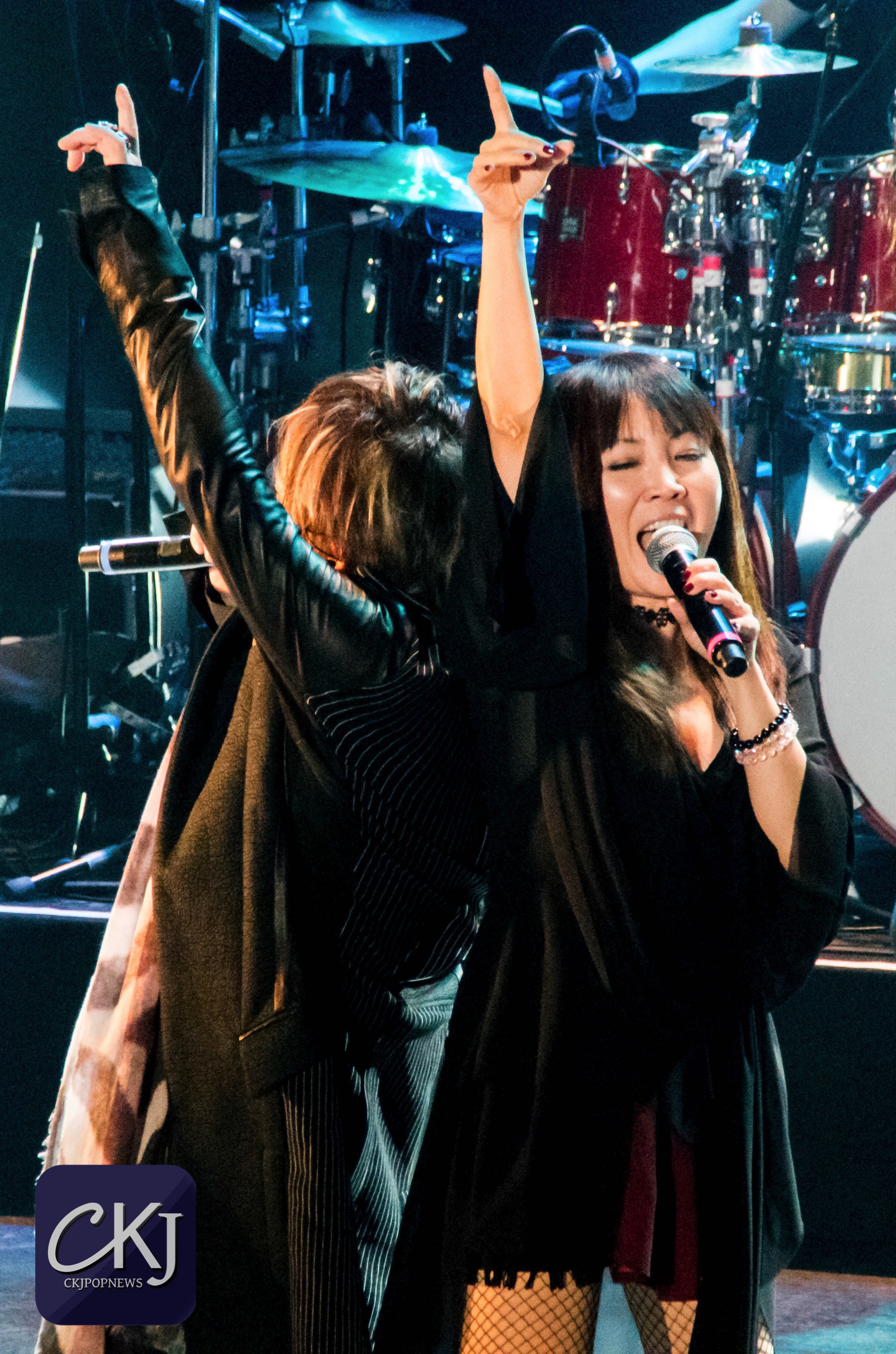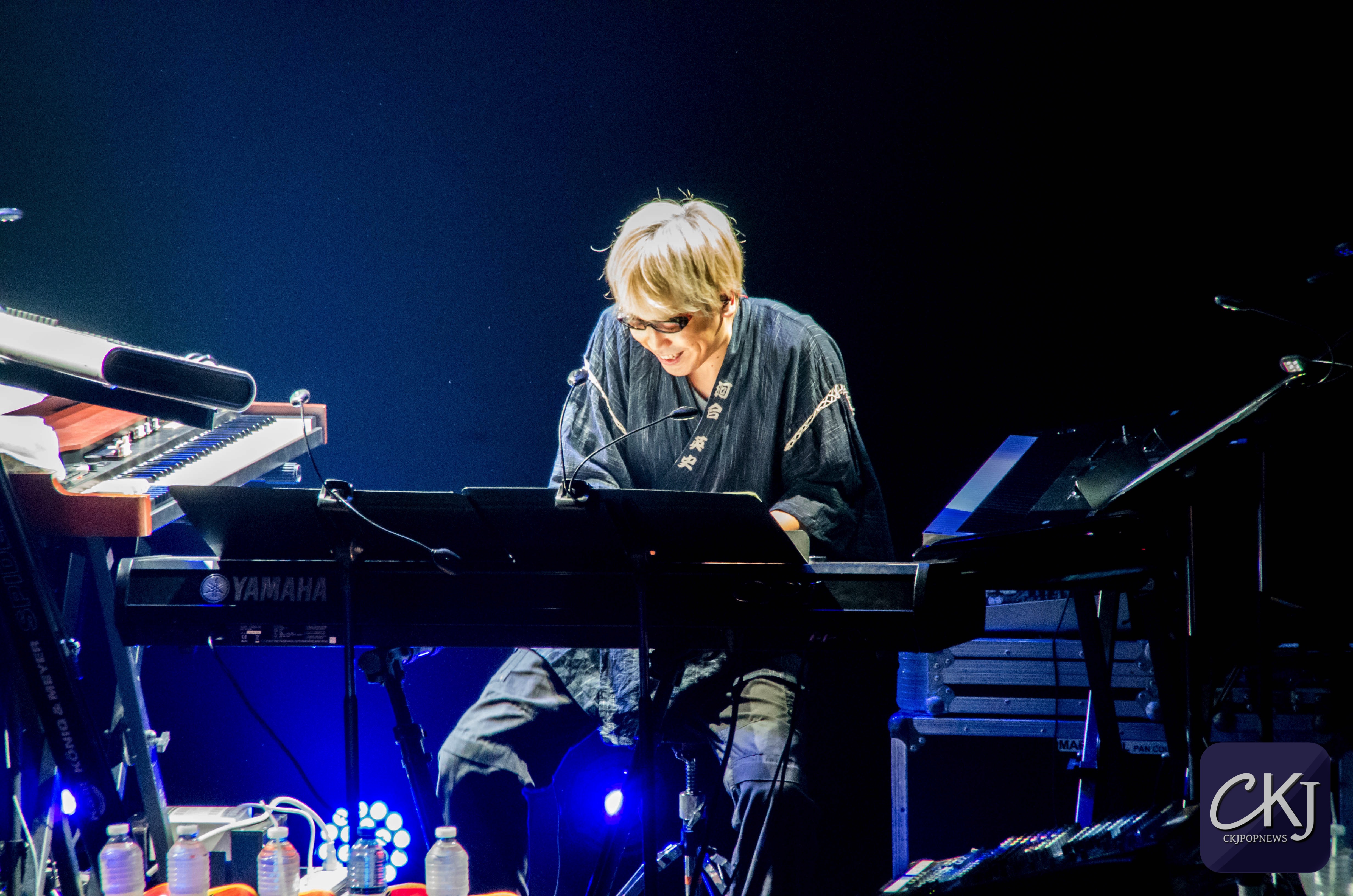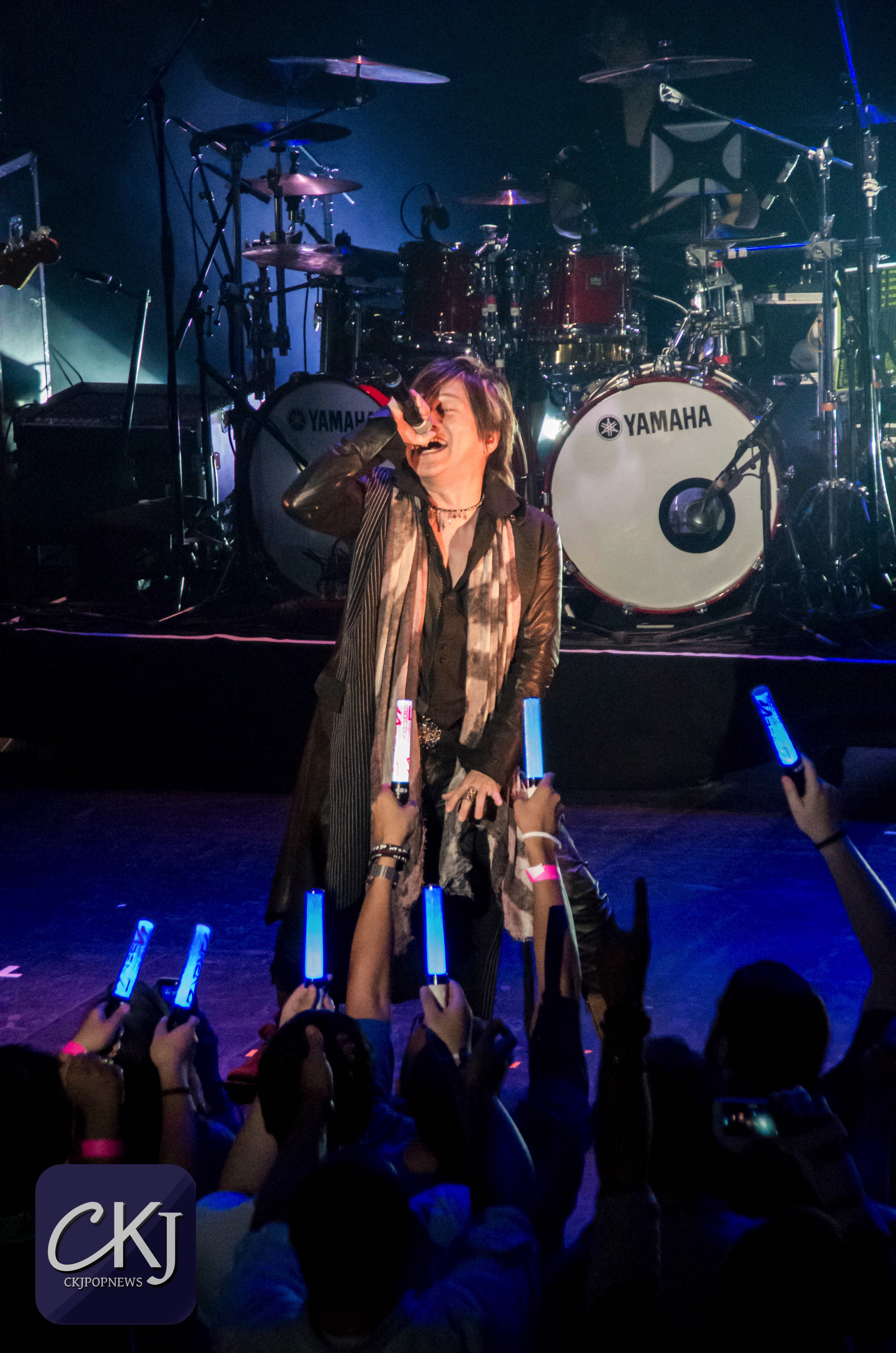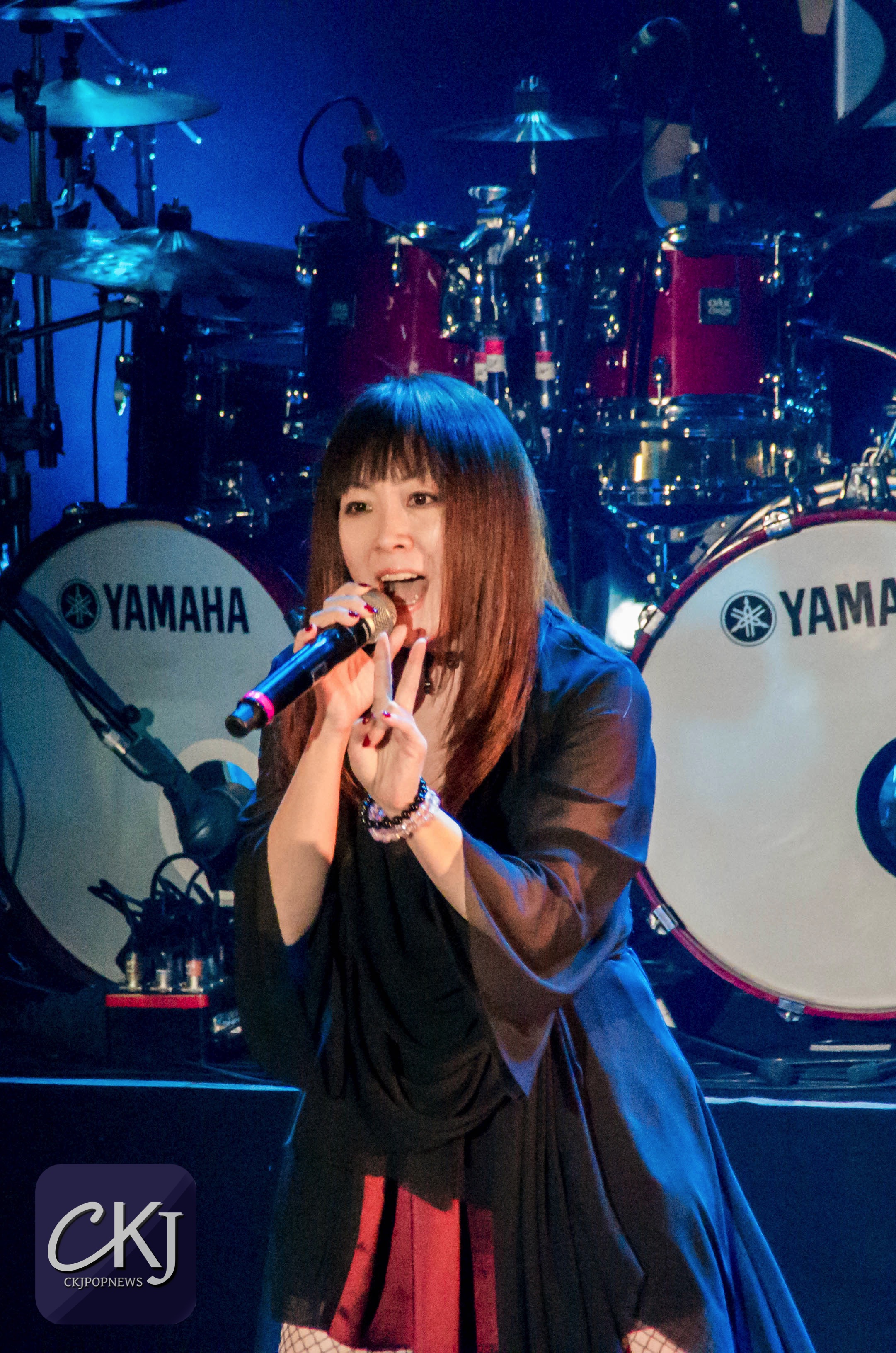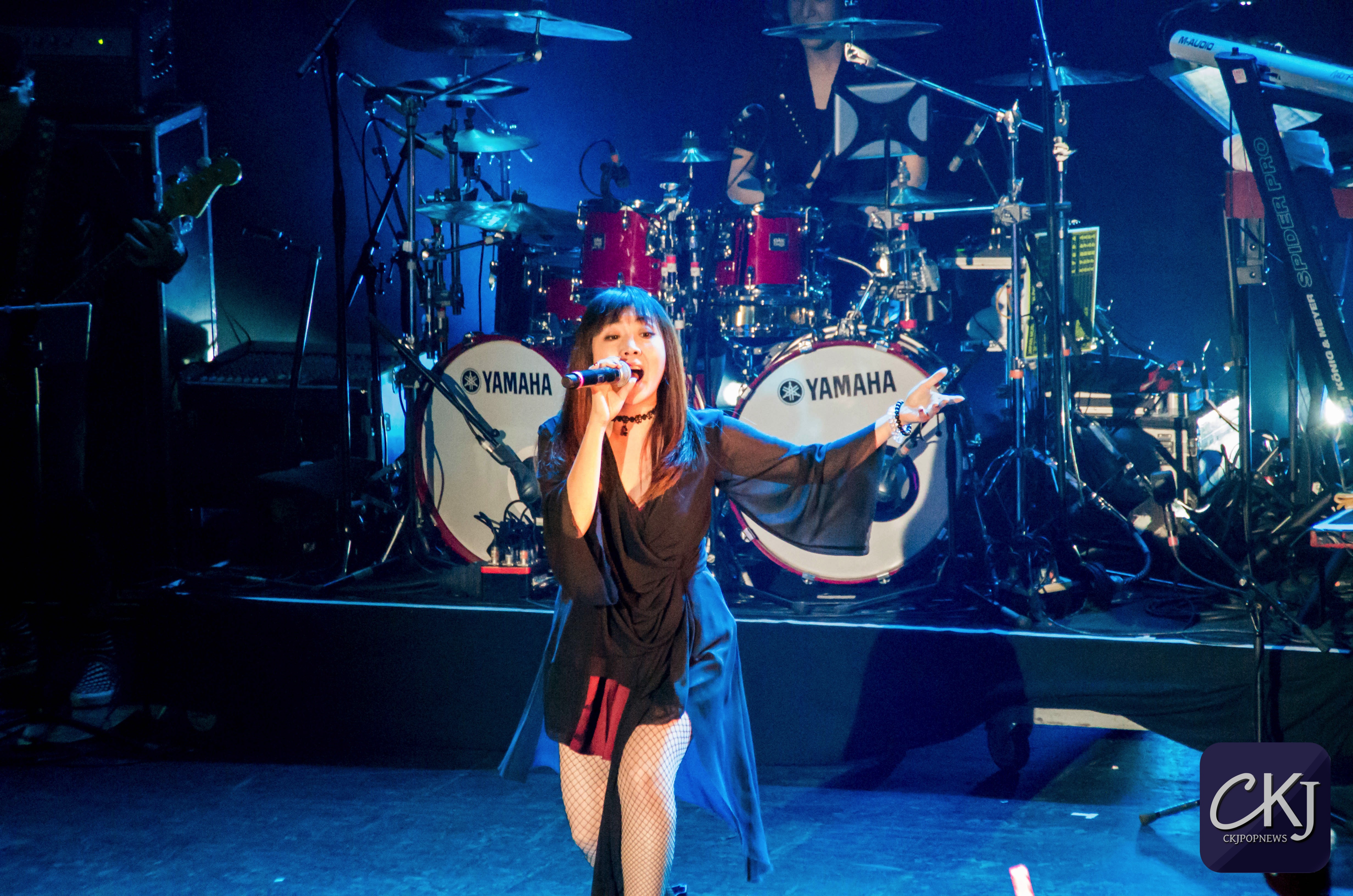 À peine arrivée au centre de la scène, Masami Okui entame son set sans aucune hésitation. Elle représente véritablement le côté envoutant du groupe, à la fois avec sa voix qui se distingue radicalement des autres membres du groupe (pour des raisons plutôt évidentes), mais aussi pour sa gestuelle si particulière.