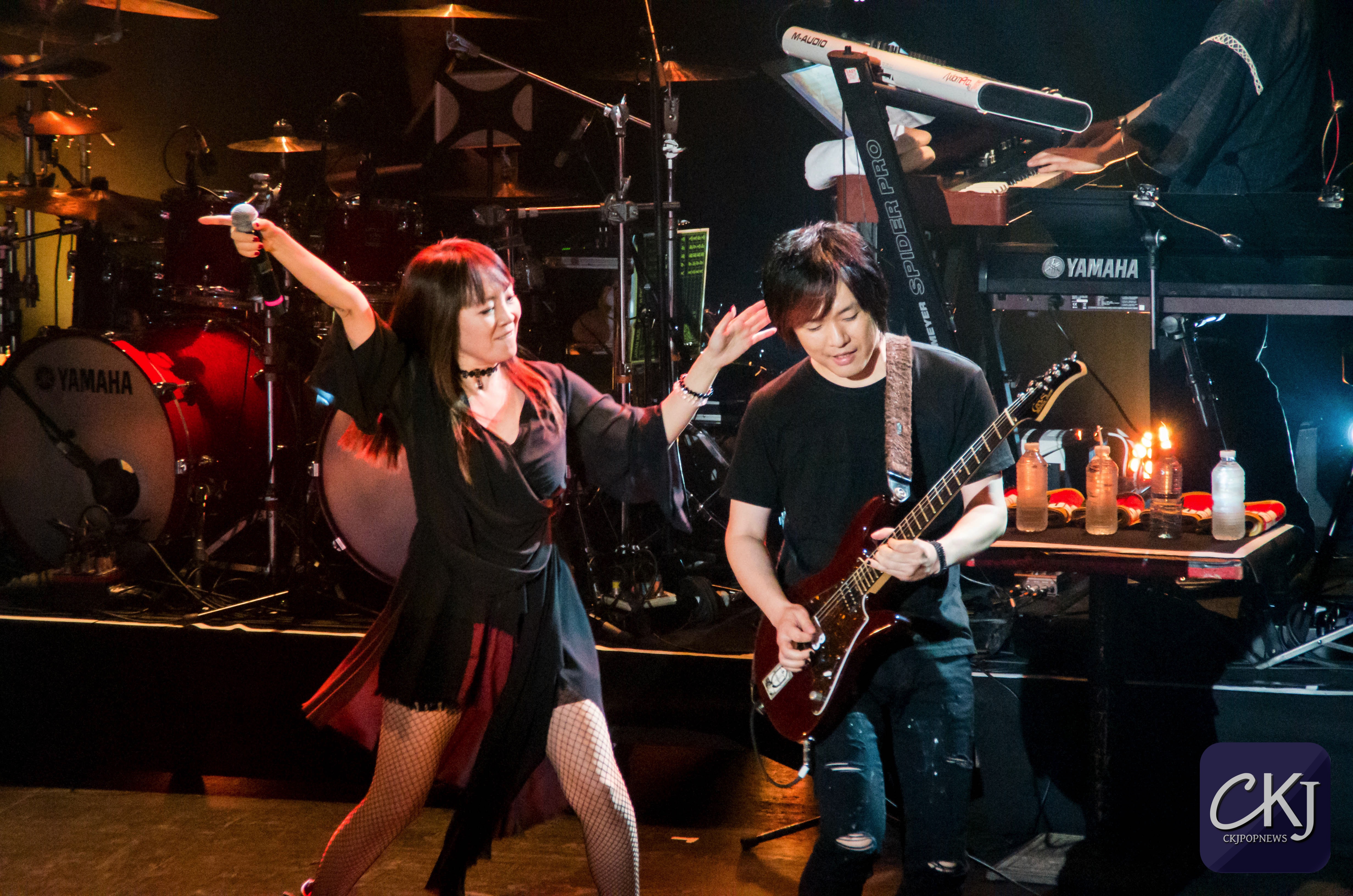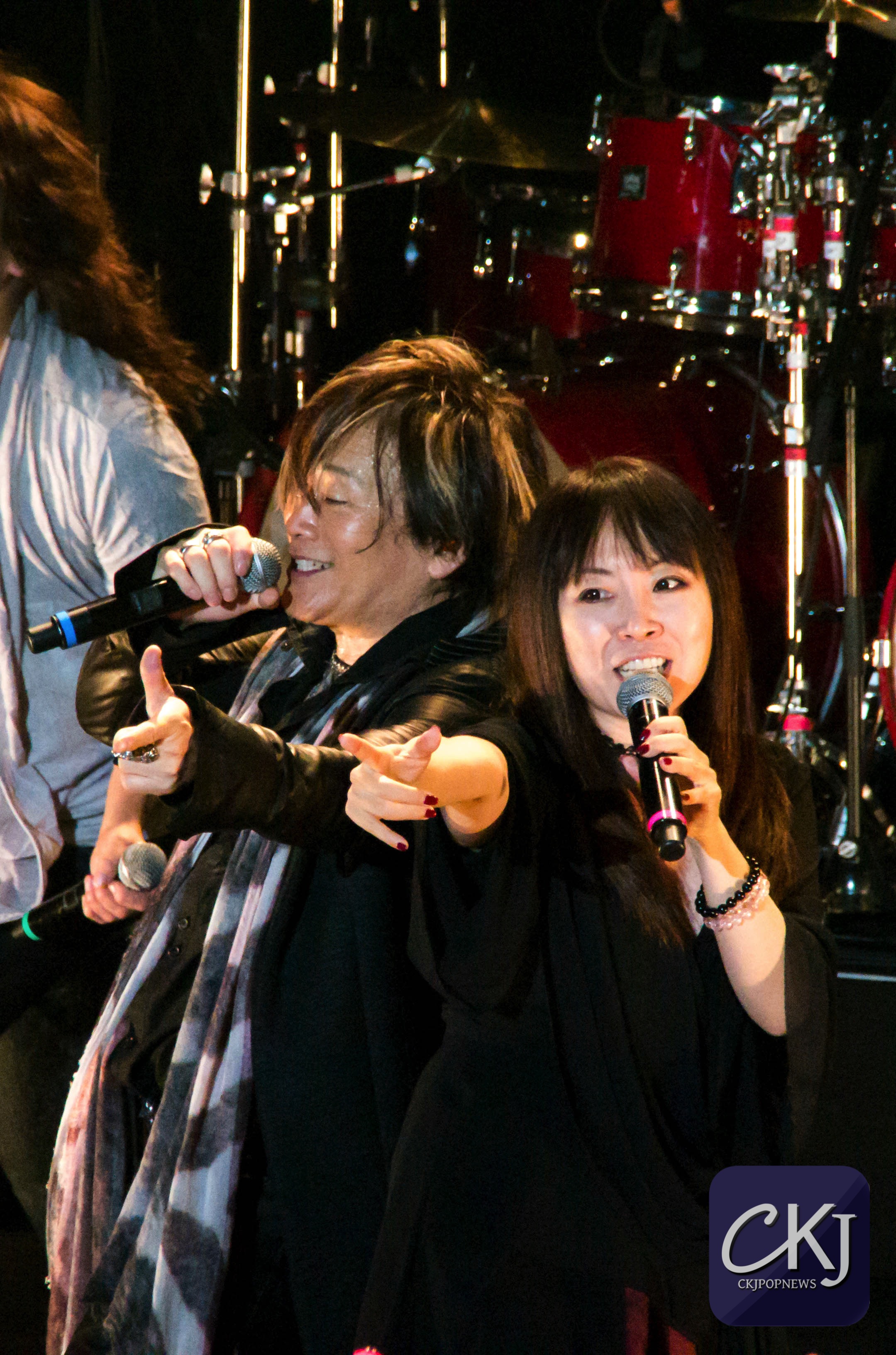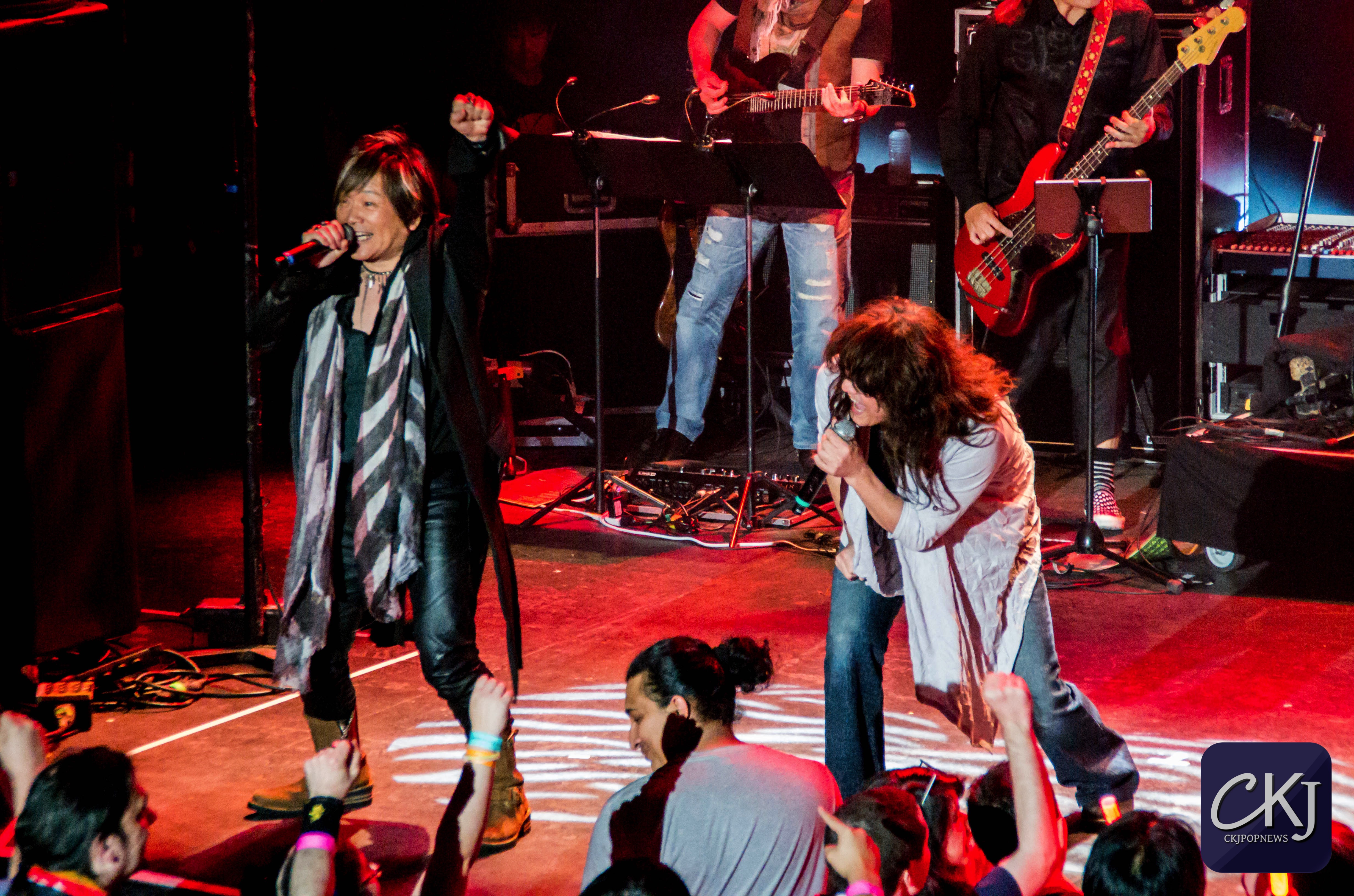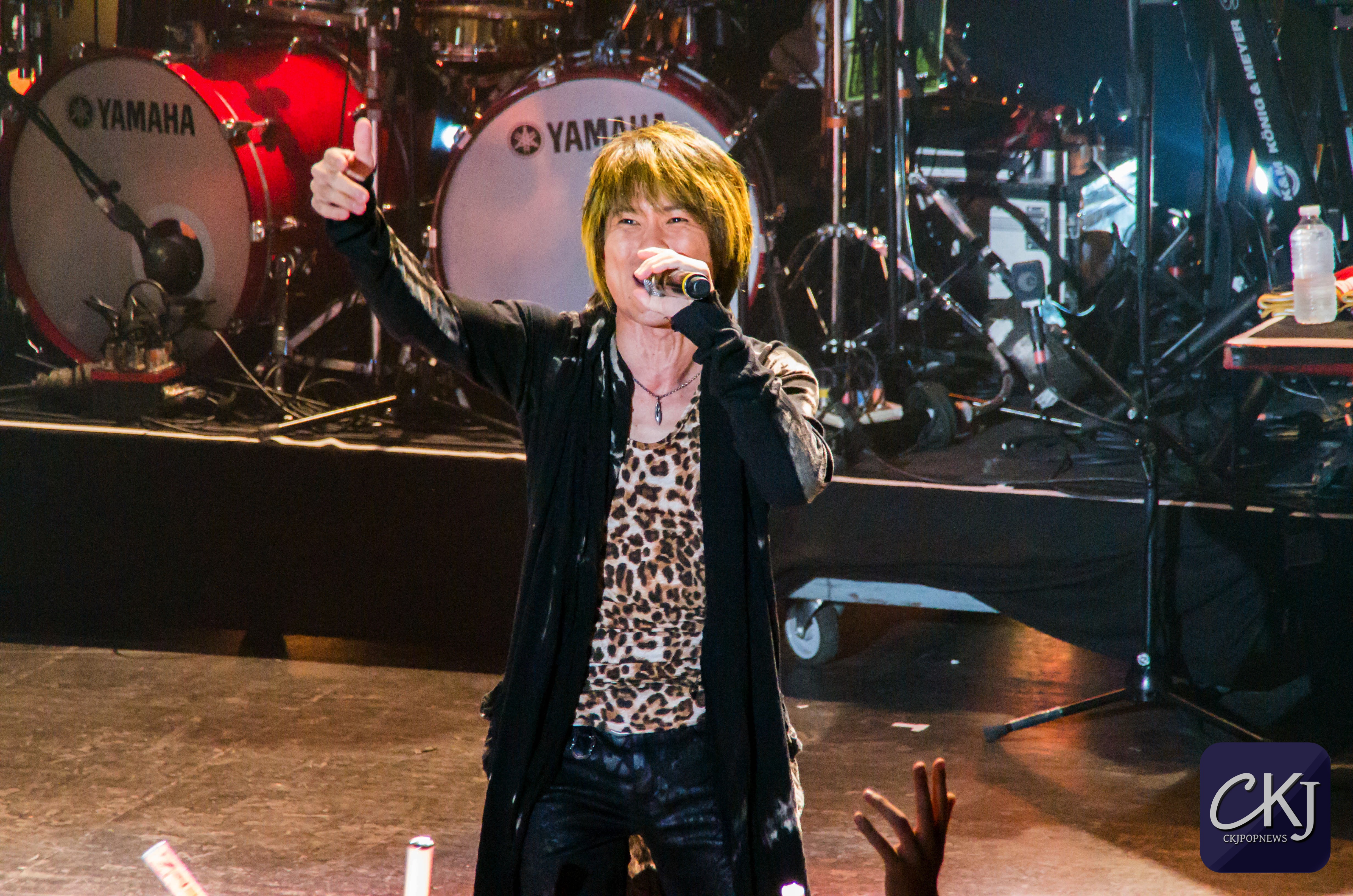 Pendant le reste de sa performance, Massaki Endoh a totalement apprivoisé la scène. Au bout de la deuxième chanson, il quitte donc la scène pour laisser place à Masami Okui, la seule femme au sein de la formation JAM Project.