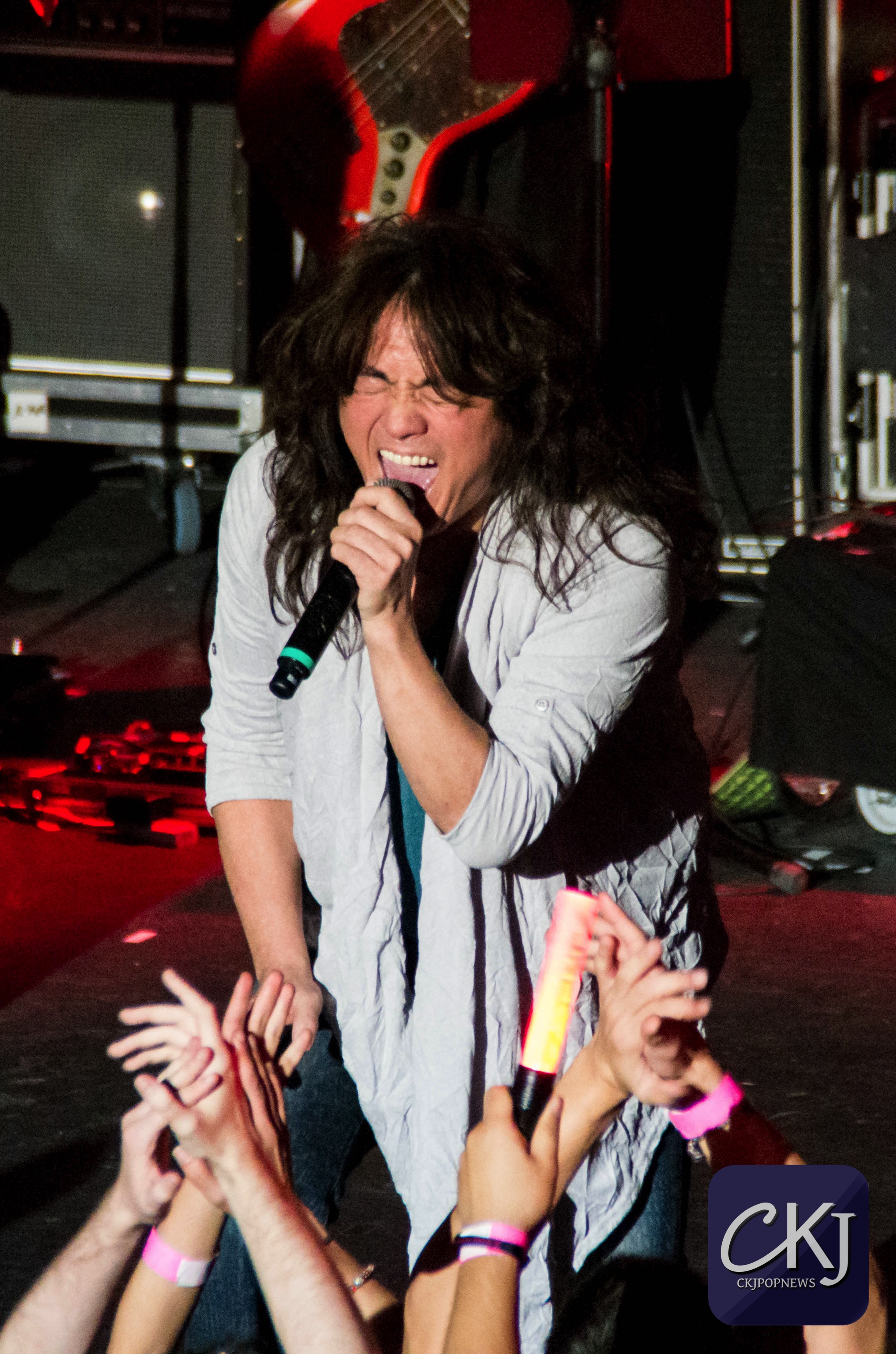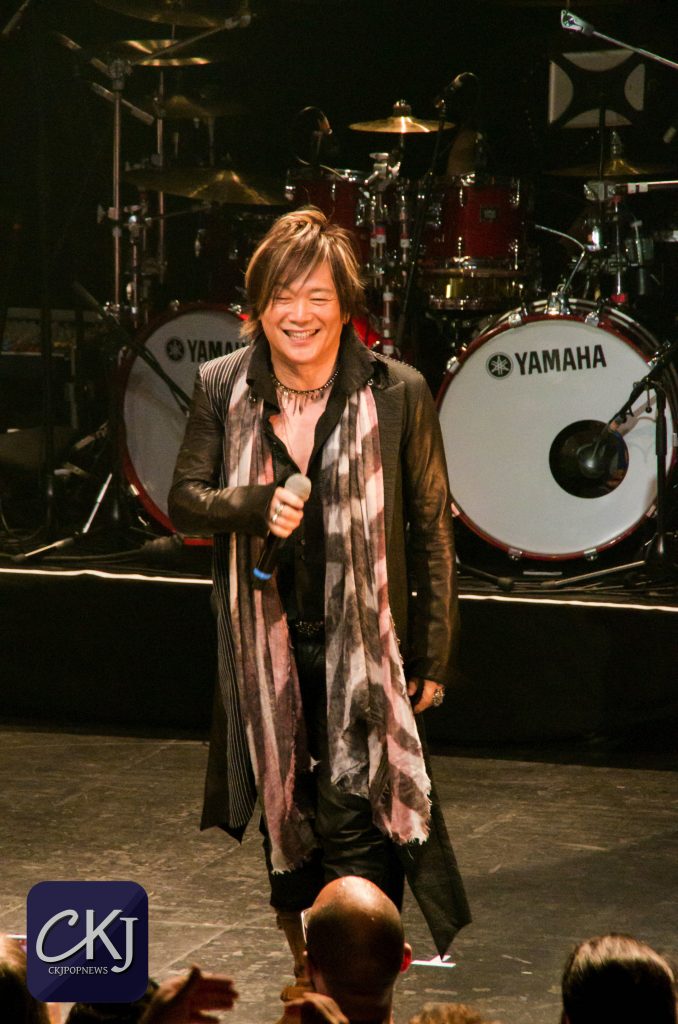 Quelques minutes plus tard, Masaaki Endoh fait une entrée fracassante et reprend la très célèbre chanson ‘Go Go Power Rangers’. Masaaki a la prestance d’un vrai lead singer, et se montre aussi euphorique que les fans ! Une fois son premier titre terminé, il se présente au public : « Ça va ? Je m’appelle Masaaki Endoh et merci d’être là ! Le français est difficile pour moi. Éclatez-vous ce soir ! Il me reste une chanson à faire, let’s go ! »
