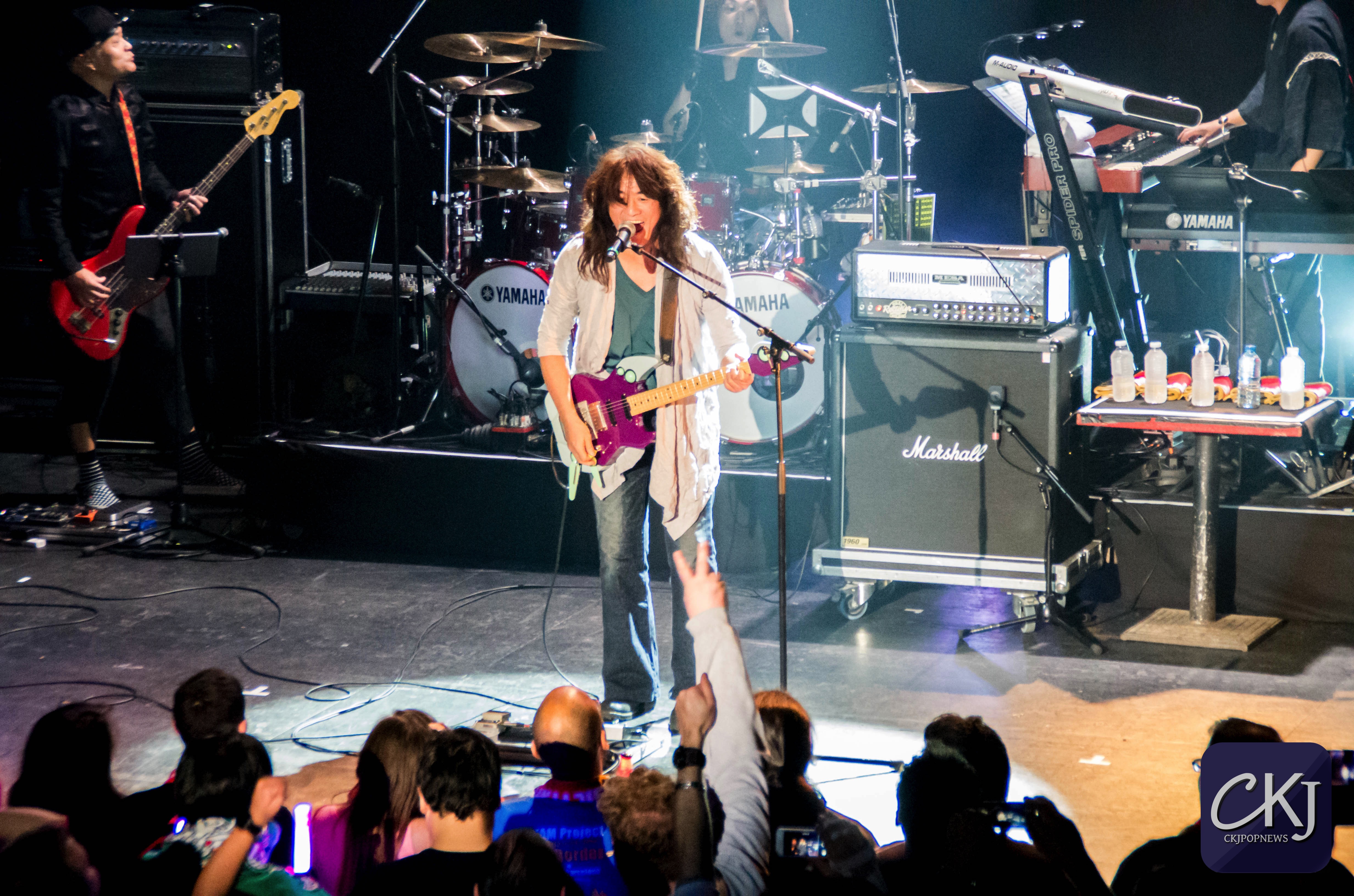 Hiroshi entame alors un petit discours : « Bonsoir la France, ça va ? Merci beaucoup ! Vous connaissez One Piece ? Vous connaissez ‘We Are’ ? Vous me connaissez ? ». Avec les acclamations du public, Hiroshi enchaine sur ‘We Go’, encore une chanson issue de l’univers du pirate au chapeau de paille. La communauté de fans de J-Music et d’anime est clairement au rendez-vous, ce qui a vraiment fait plaisir aux membres du groupe.