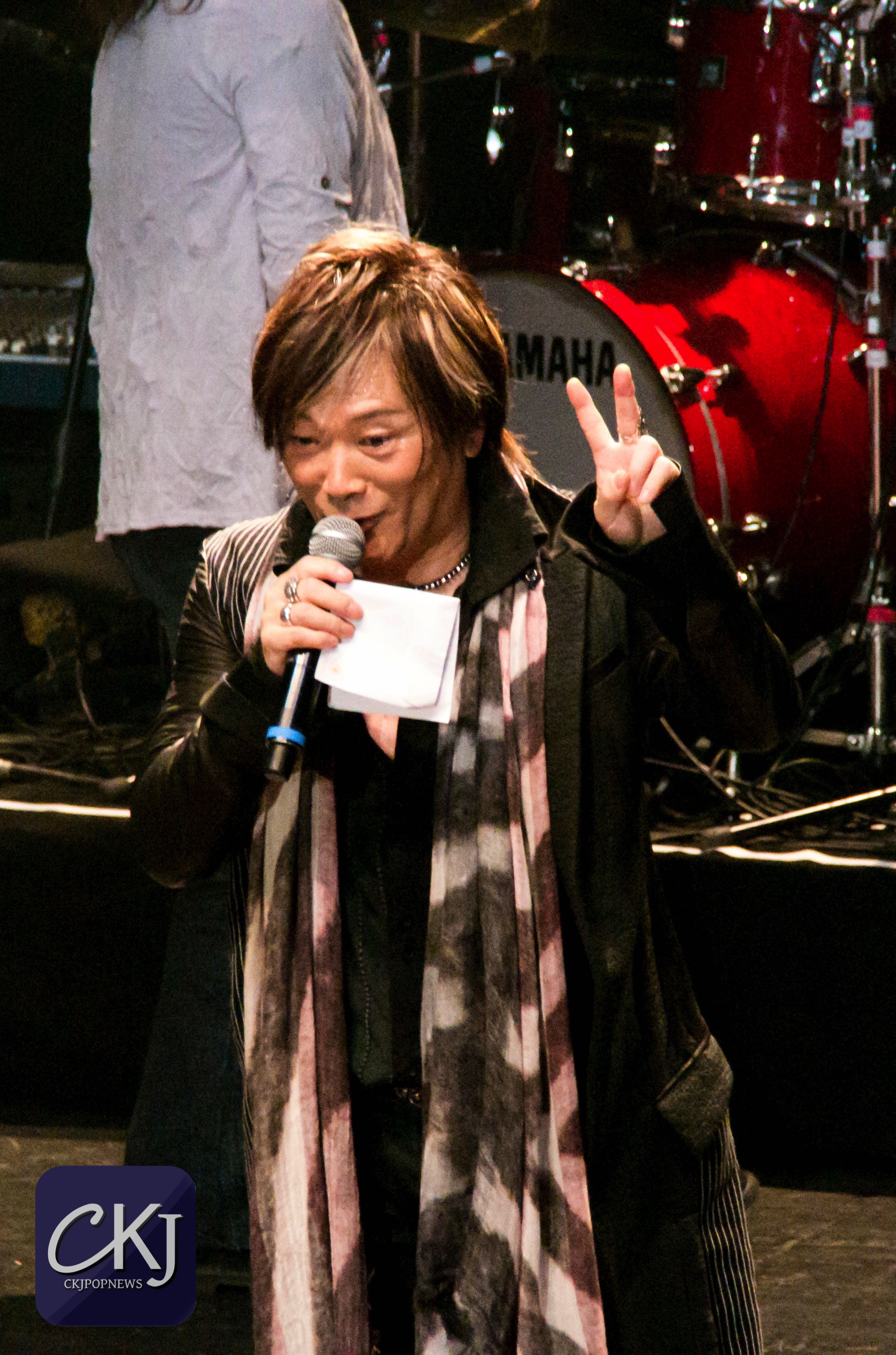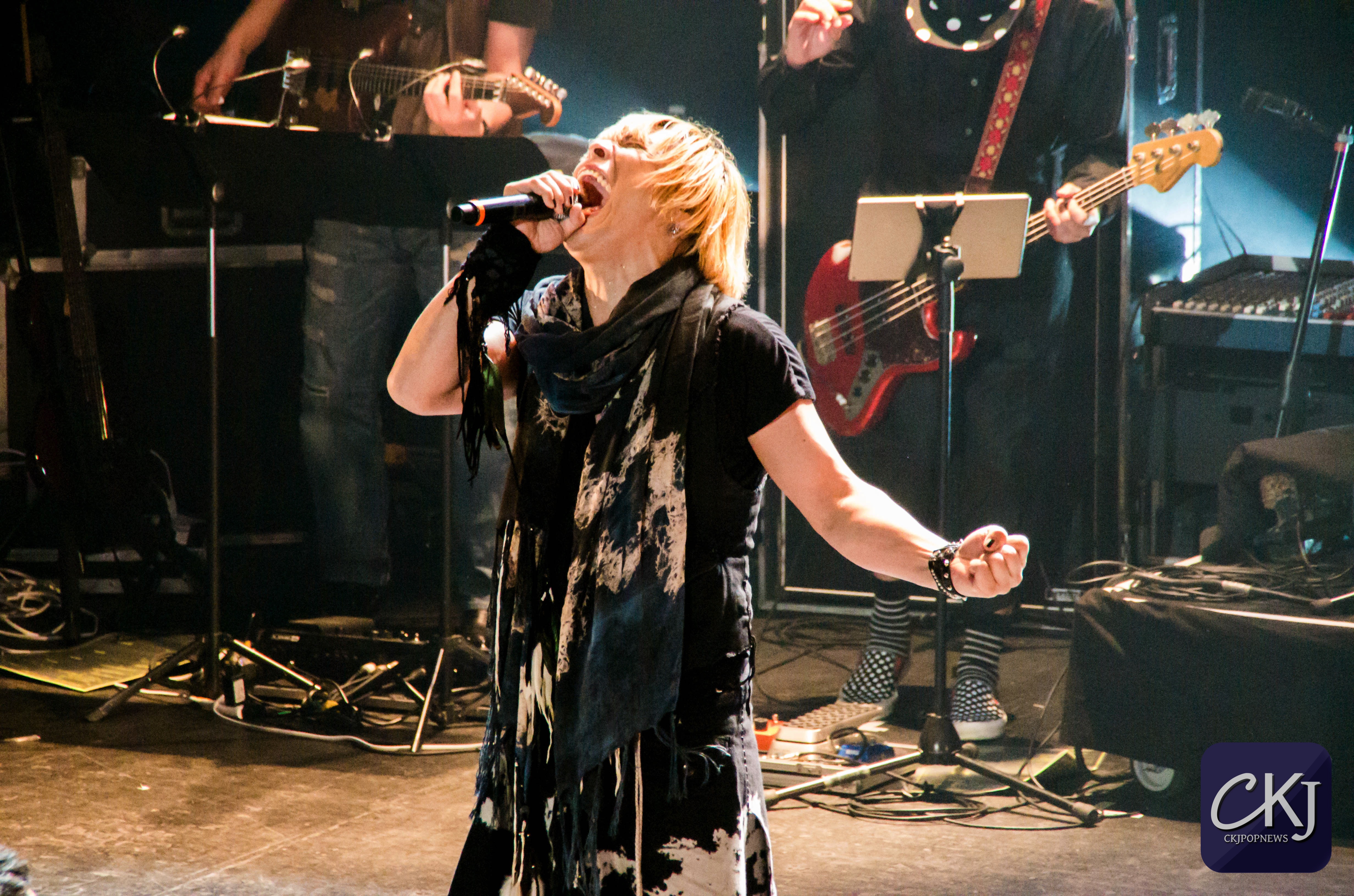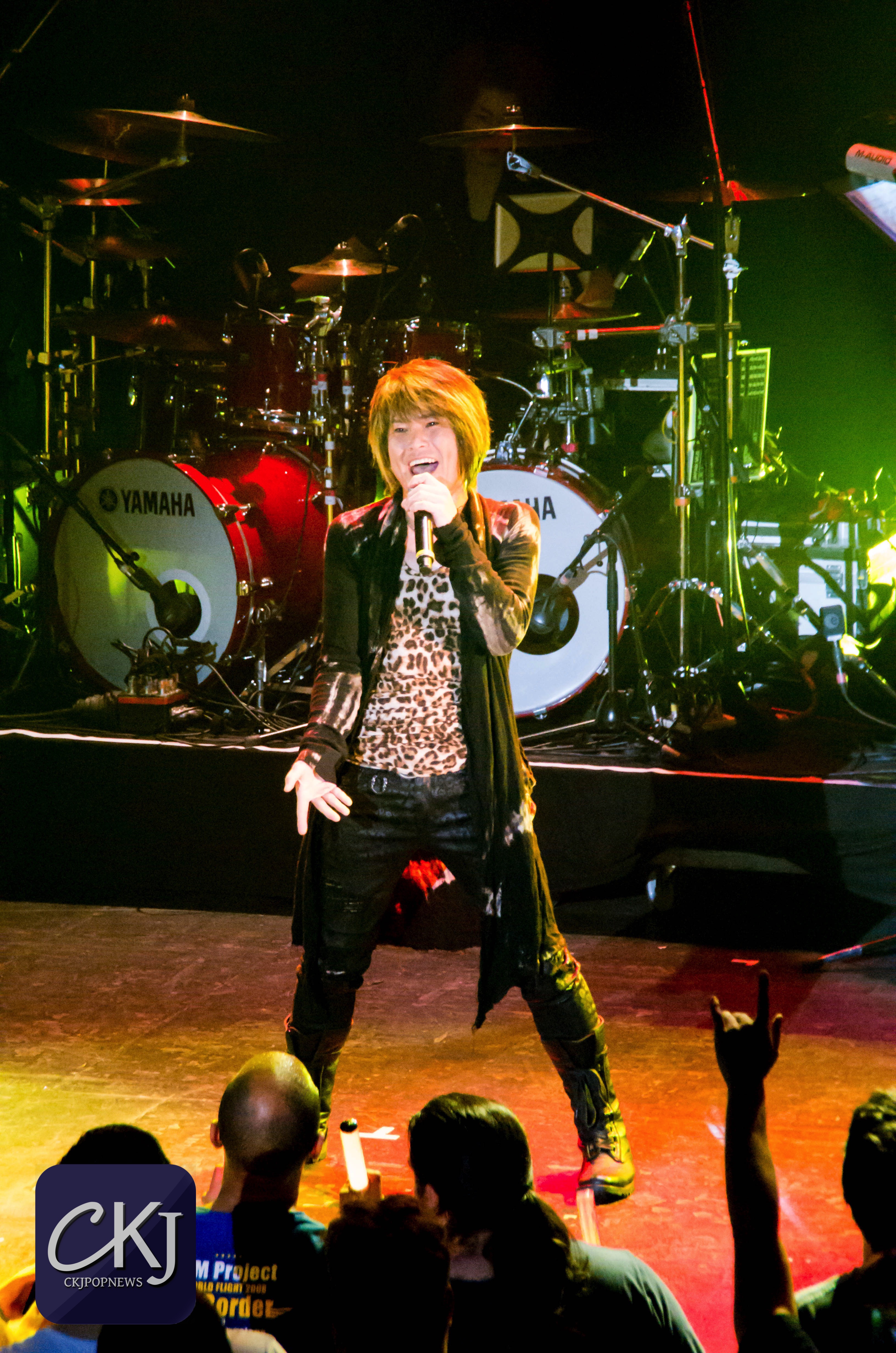 « Ça fait 8 ans que nous ne sommes pas venus en France. La dernière fois c’était en 2008 à Japan Expo. Nous sommes heureux de vous revoir, merci ! Éclatez-vous pendant notre concert d’anison ! [ndlr : le terme ‘anison’ est une contraction de ‘anime’ et ‘song’ et désigne donc les chansons qui forment les bandes originales des anime]. Vous devez connaitre une bonne partie de nos chansons, alors chantez en choeur avec nous si vous les connaissez ! »