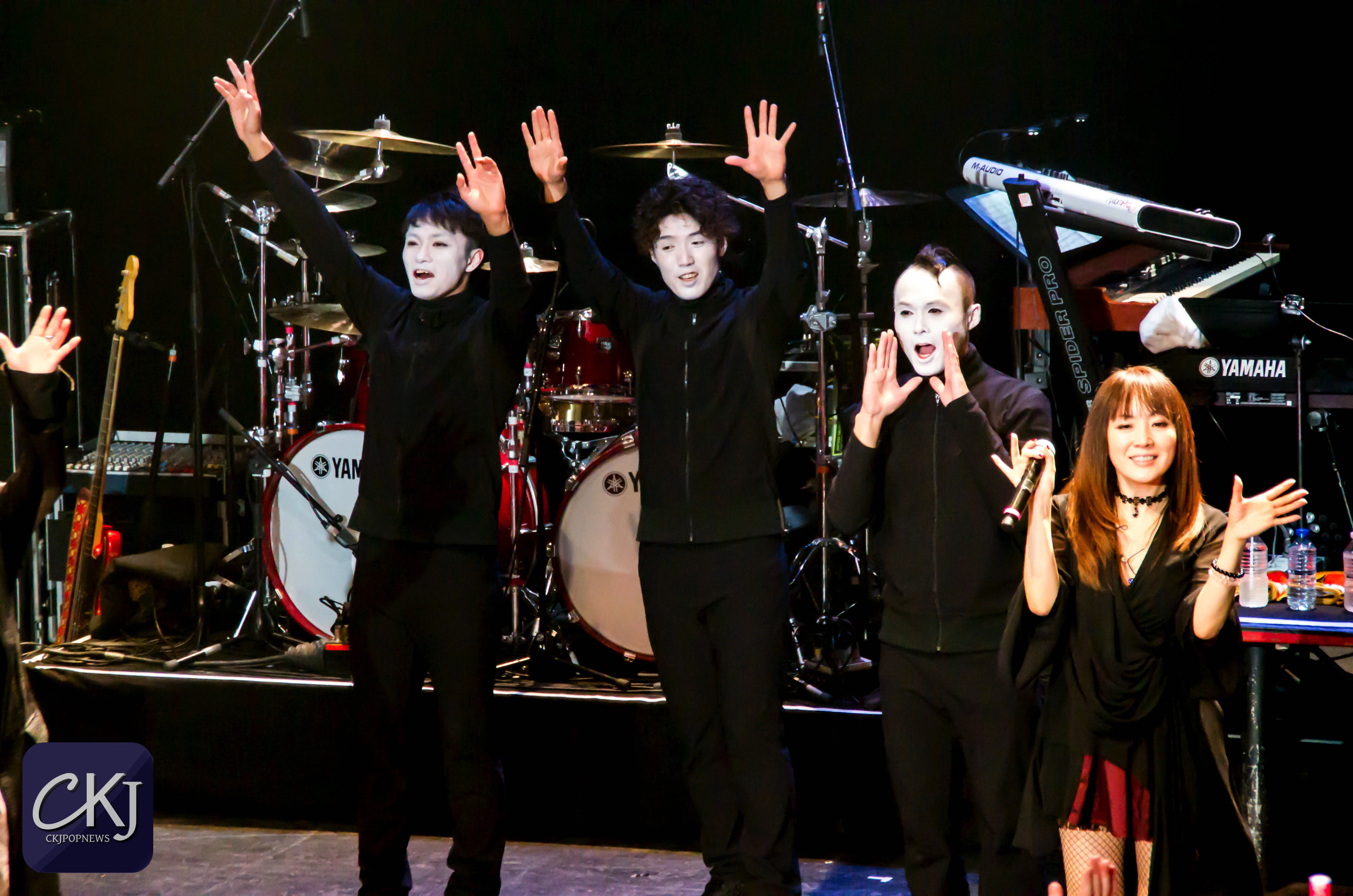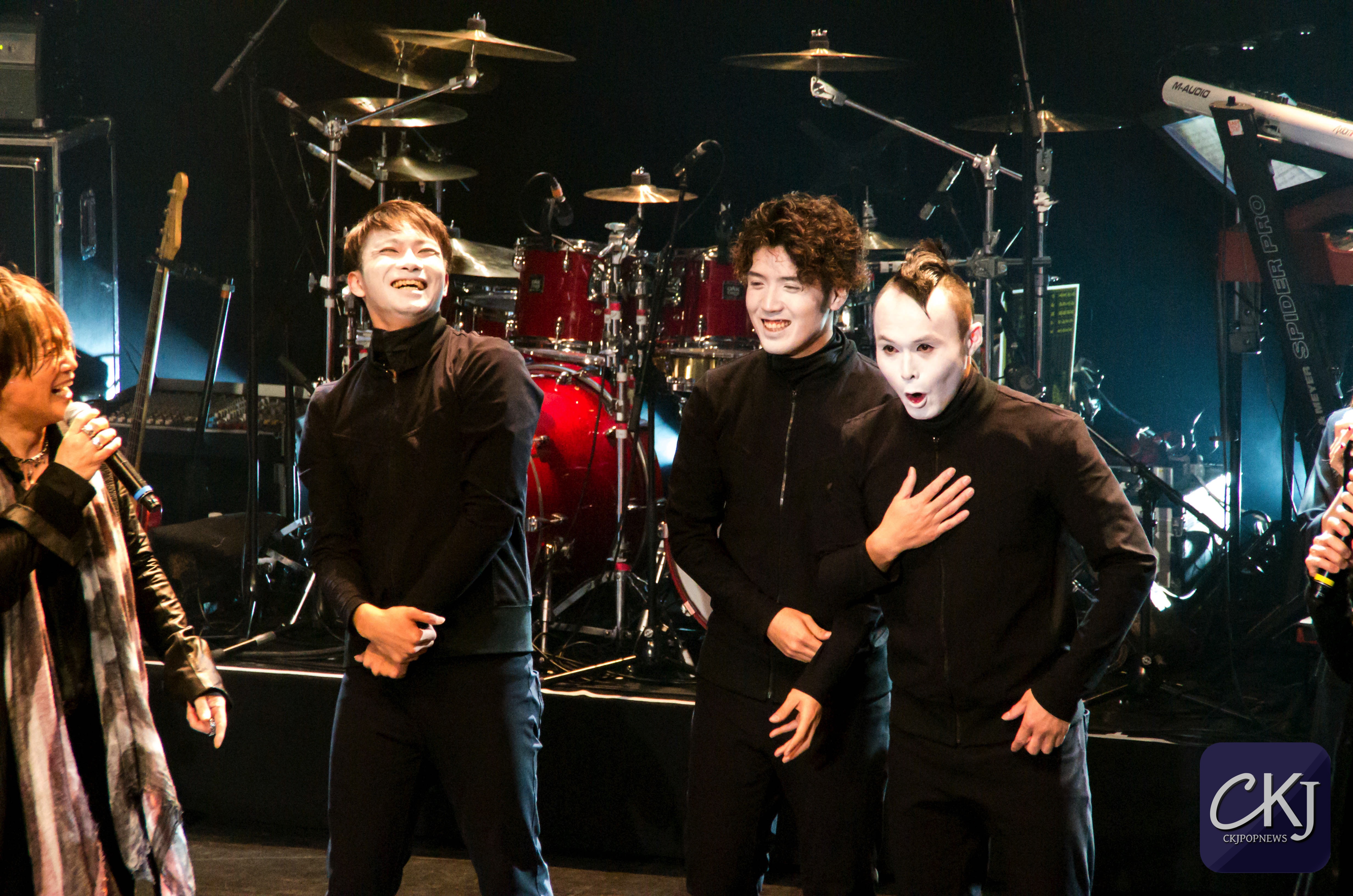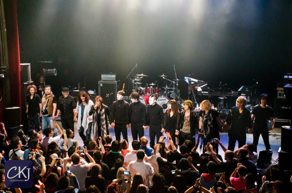 Des membres du public, sur la base du volontariat, sont montés sur scène avec le groupe pour prendre différentes poses bien précises, immortalisées en photo. Tout le monde savait qu’ils planifiaient quelque chose pour la suite de la soirée, mais à ce stade, on ne savait pas encore de quoi il s’agissait exactement. Malheureusement pour ce premier soir de Japan Music Party, la salle a un peu peiné à se remplir (vous verrez que c’était loin d’être le cas le deuxième jour !).