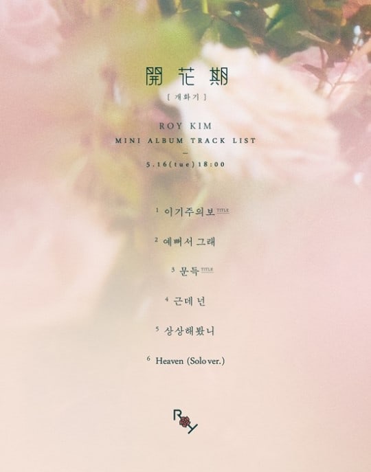 Le chanteur Roy Kim continue de promouvoir son retour, et cette fois-ci, c’est la tracklist de son prochain opus “Blooming Season” (titre provisoire).