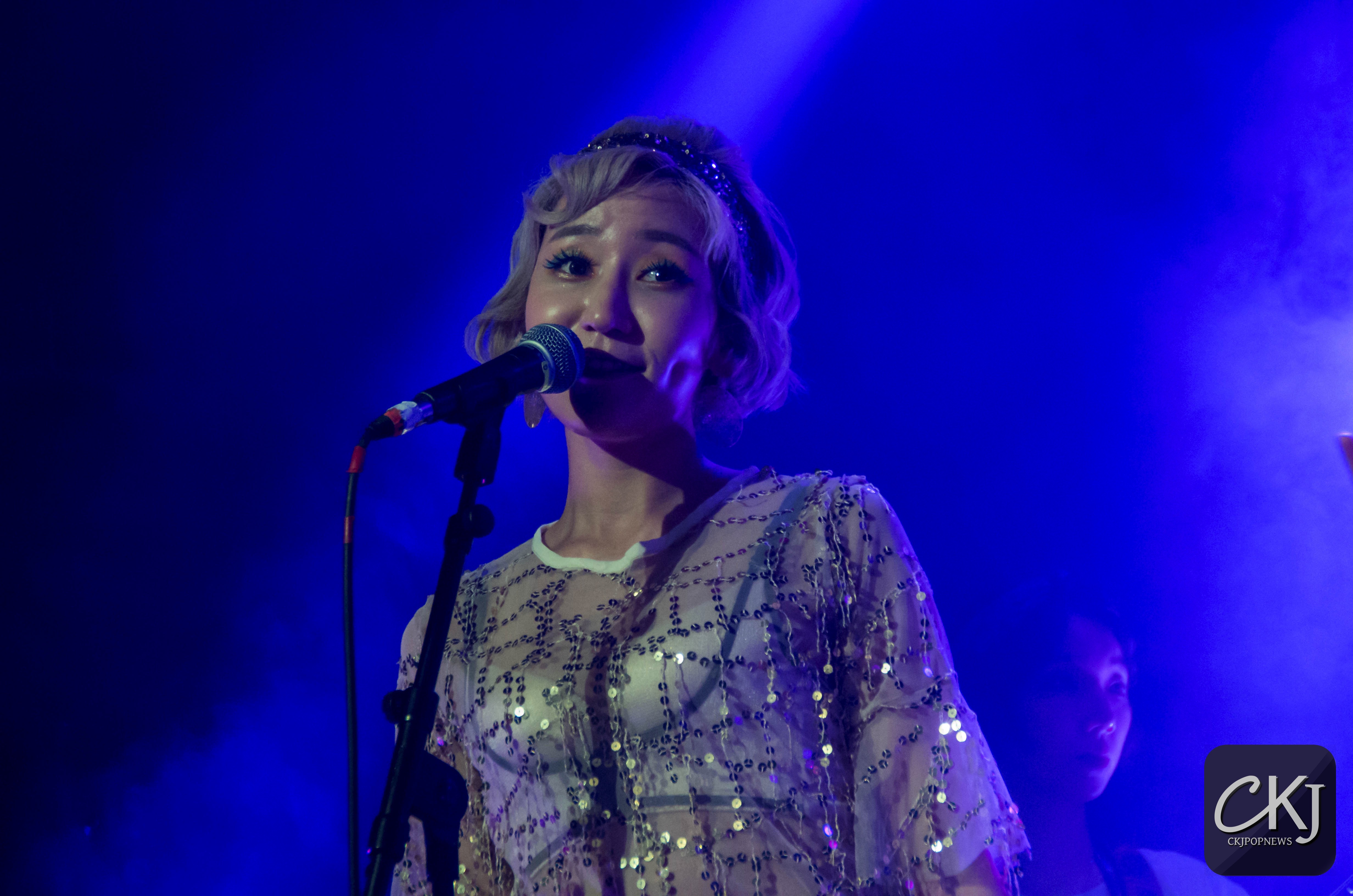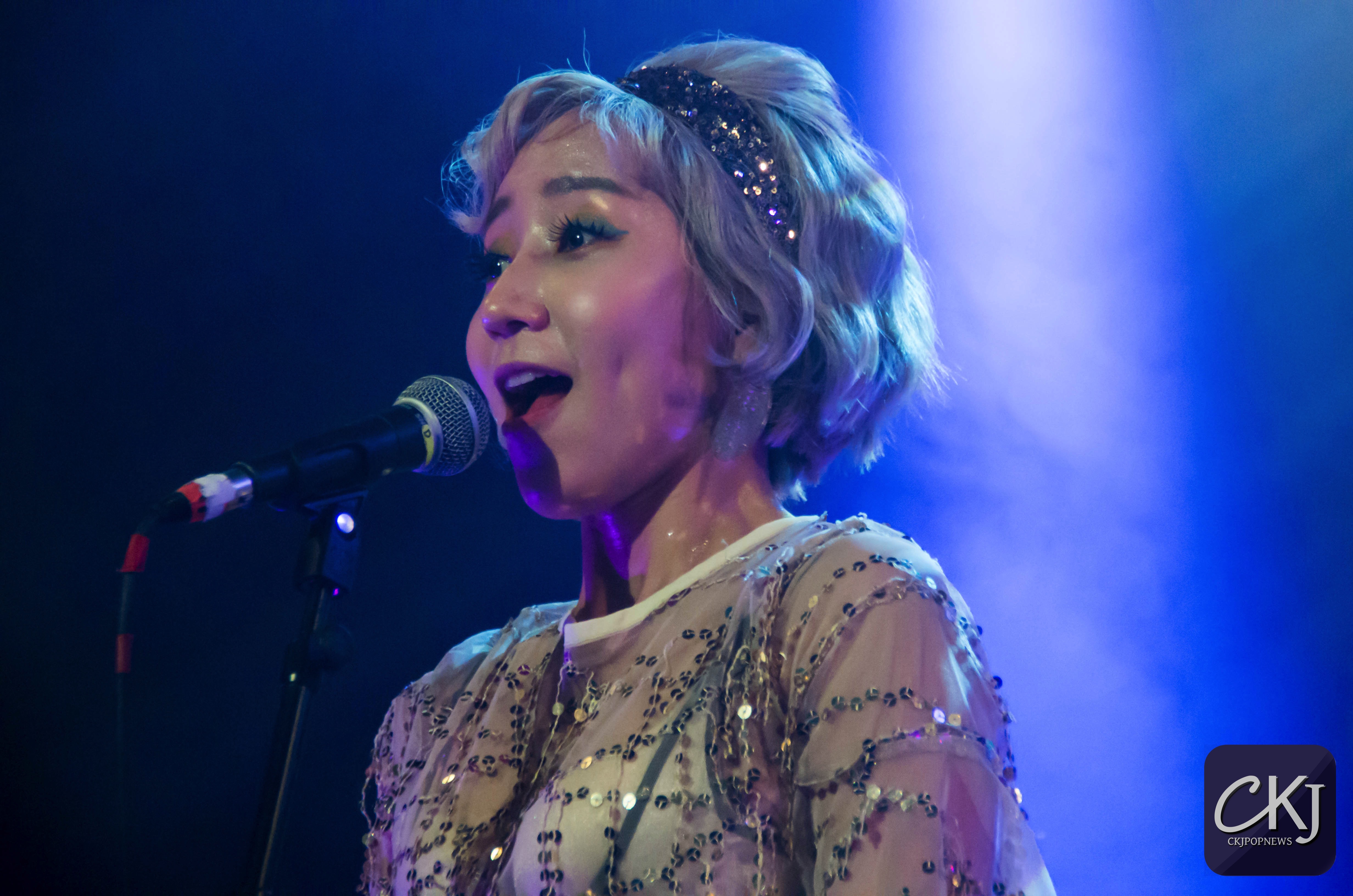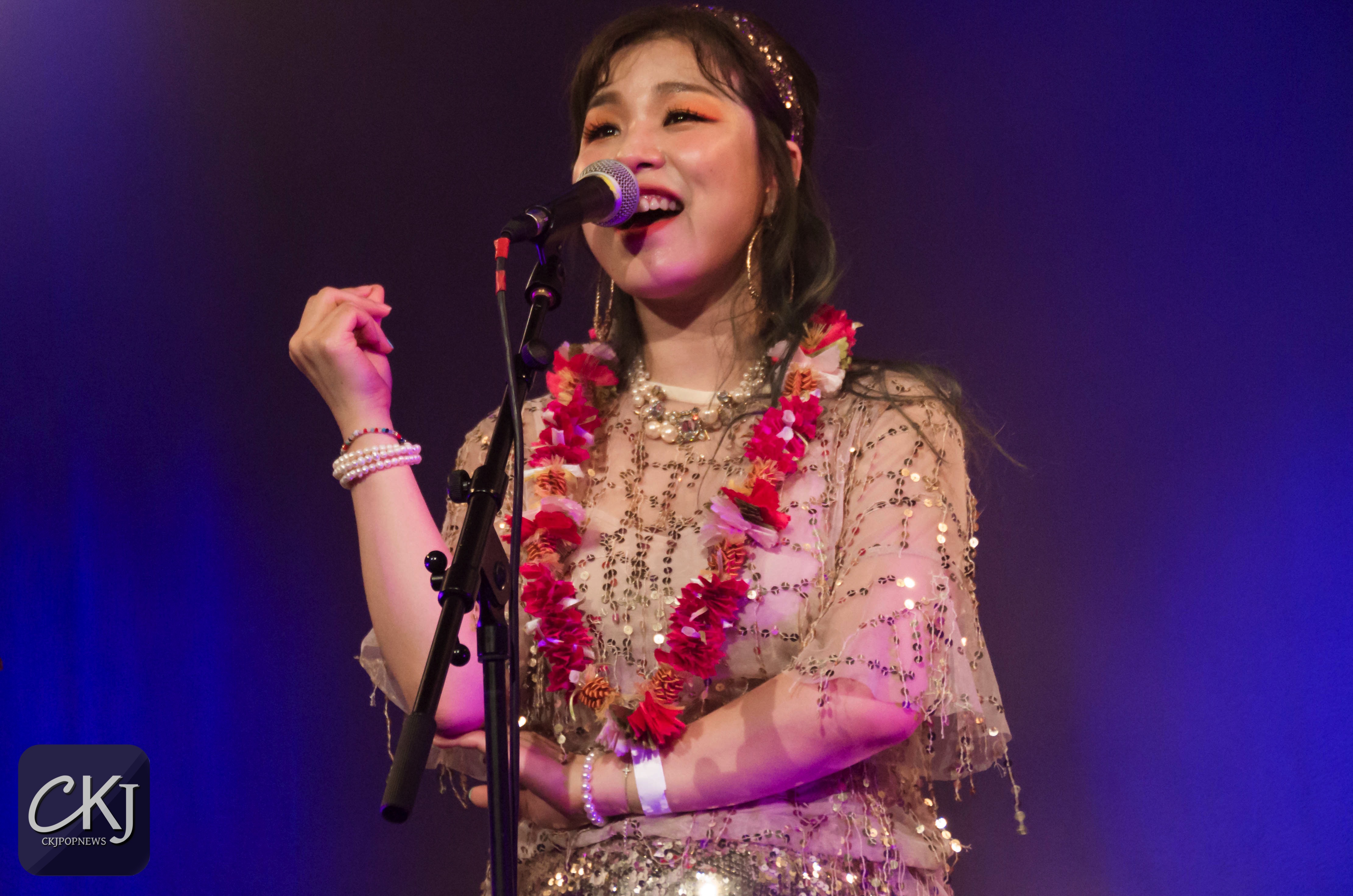 Alors qu’une bonne partie du concert était déjà passée, Shinae a annoncé que Sunnie allait interpréter quelque chose en solo. Cette dernière a alors chanté la célèbre chanson « It’s in his Kiss », un titre de Merry Clayton sorti initialement en 1963, mais repris par plusieurs chanteuses connues comme Cher, très certainement la plus célèbre des versions sortie à ce jour. Shinae et Sohee ont bien entendu continué d’accompagner Sunnie au chant en tant que choeur, jusqu’à ce que « Rum And Coca-Cola », une reprise des Andrews Sisters, démarre. Une ambiance hawaïenne s’est alors installée dans la salle du Pan Piper, faisant voyager une fois de plus des spectateurs captivés.