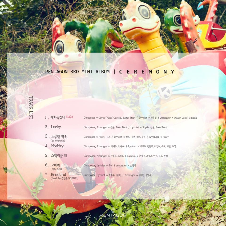 Les rookies de PENTAGON seront de retour le 12 juin avec l’EP “CEREMONY“, qui contiendra 7 chansons au total. La tracklist complète est à retrouver ici :
