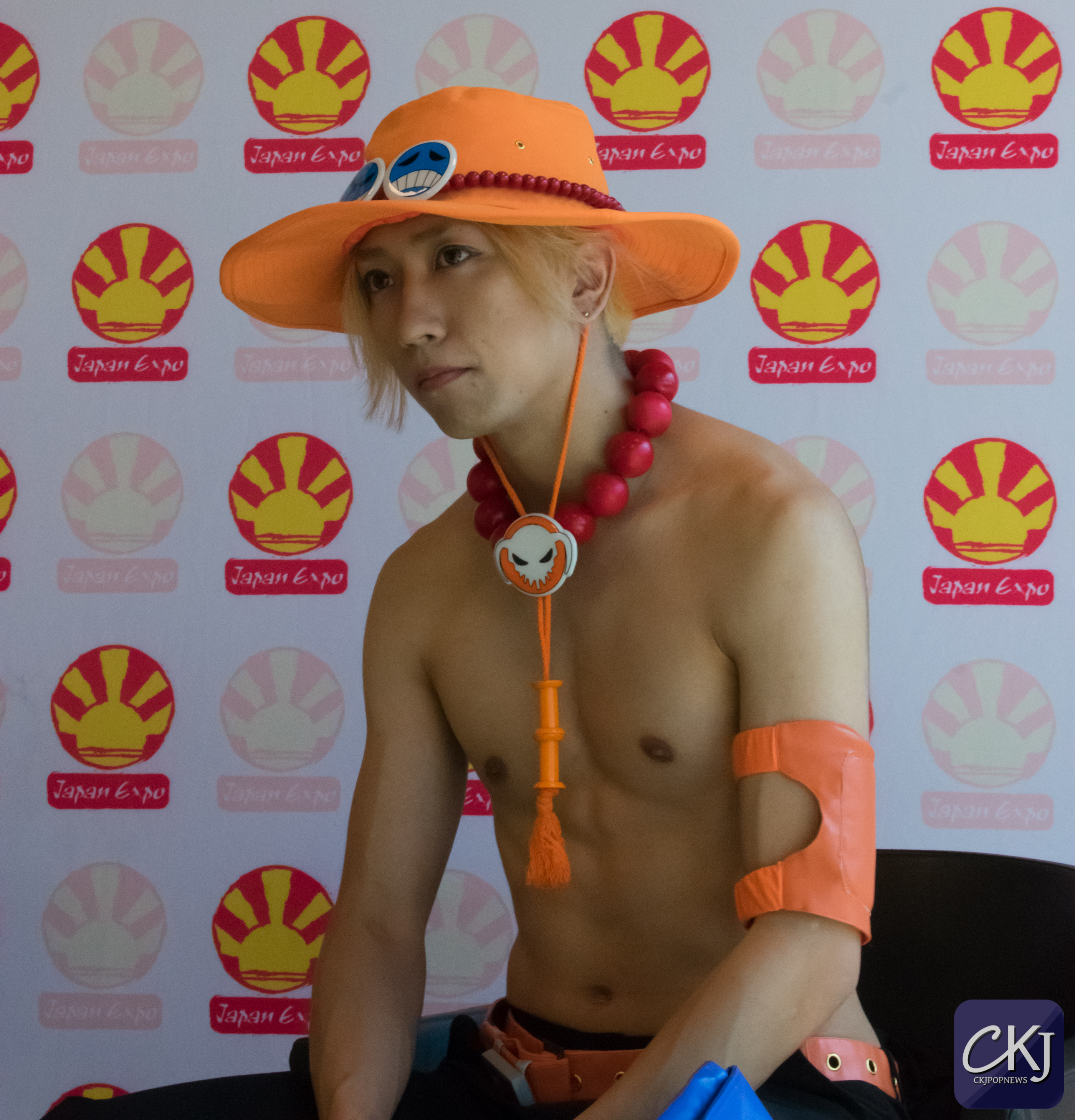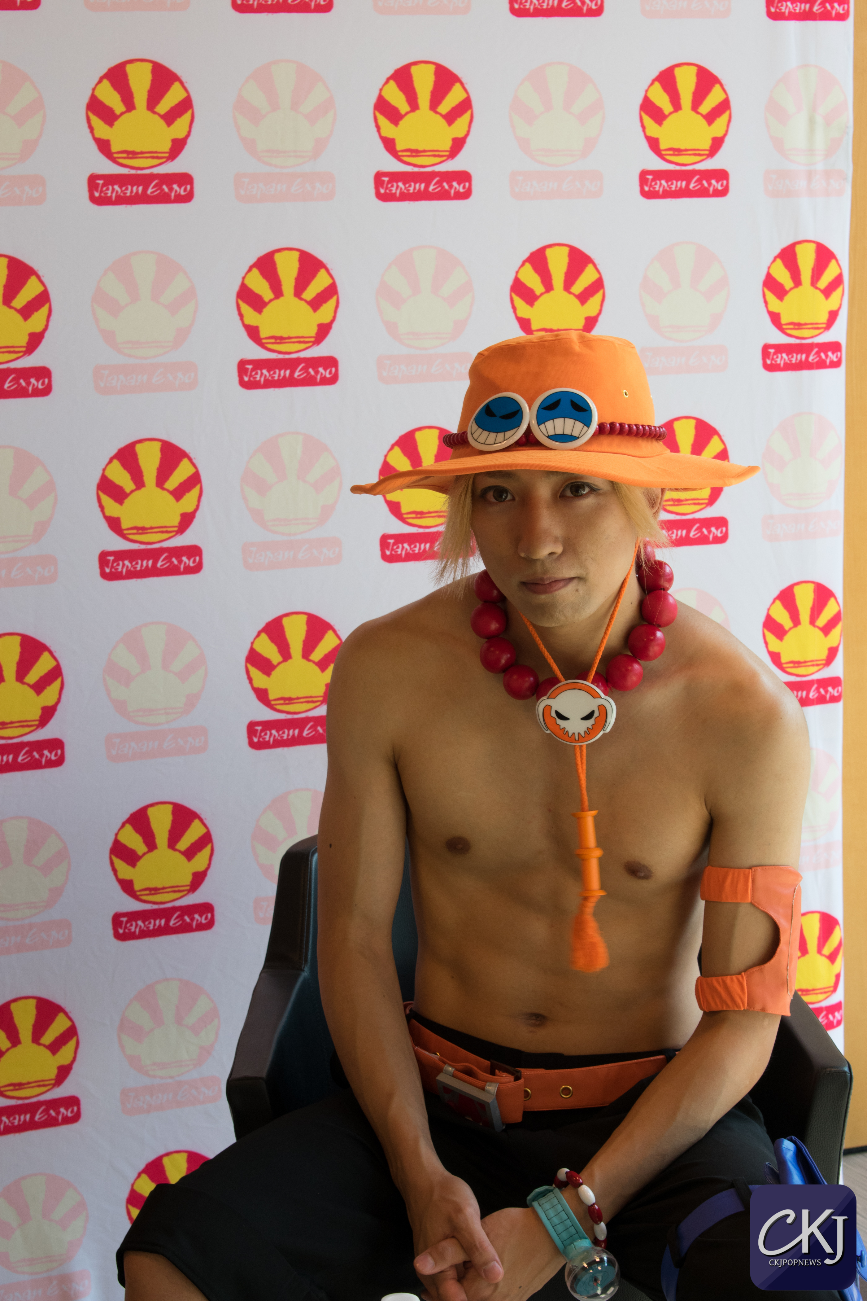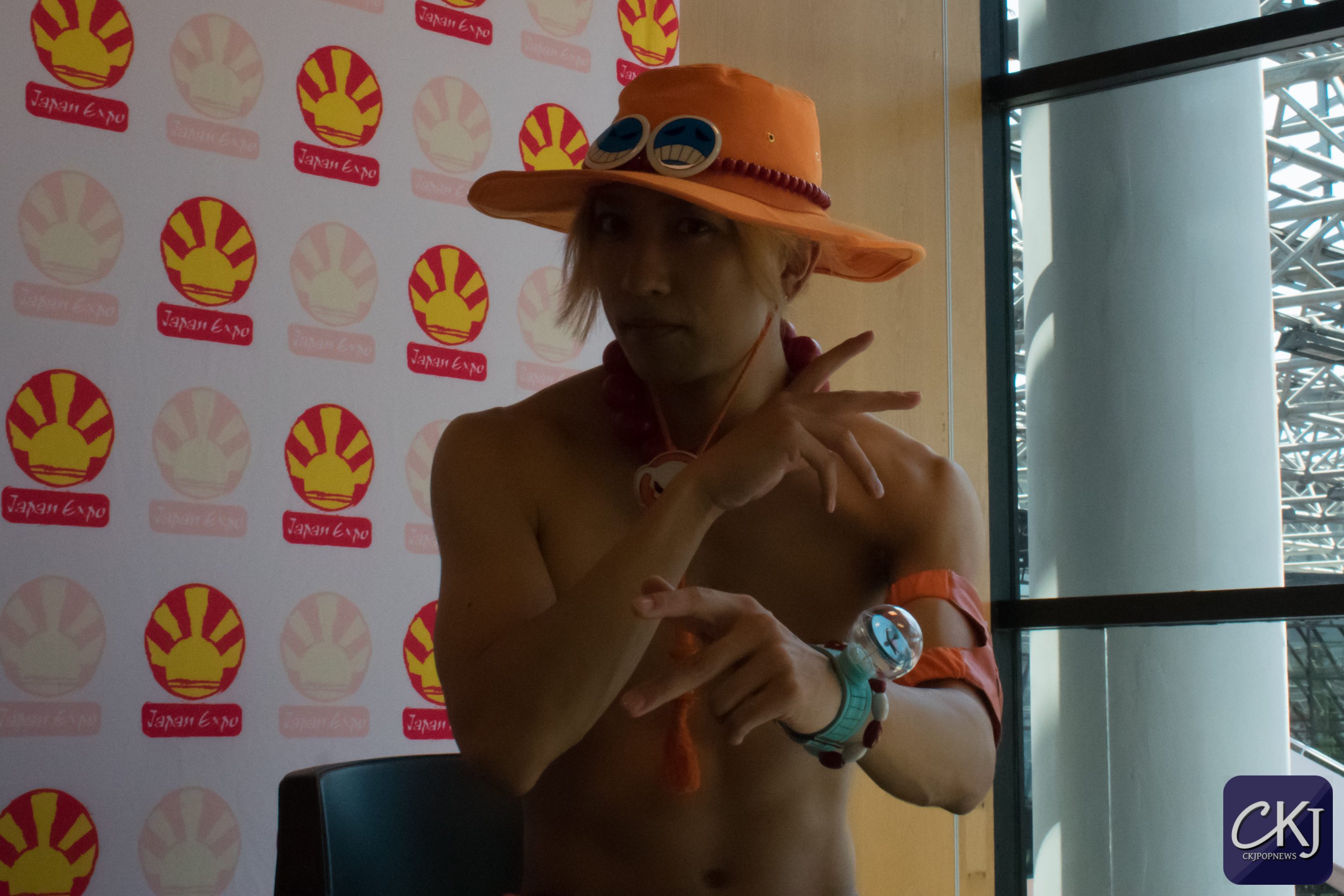 On our second day at Japan Expo, we met with Umi-Kuun who welcomed us happily in a cosplay of Ace from One Piece. Umi-Kuun is a famous Japanese singer who is using YouTube to show his talents and pass-time such as mangas, anime, cosplay…