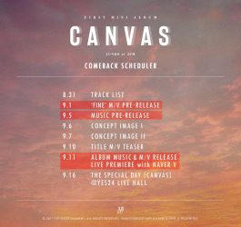 Le 31 août à minuit (heure locale), JYP Entertainment a annoncé que Junho sortirait son premier album coréen “Canvas” le 11 septembre à 6h (heure locale).
