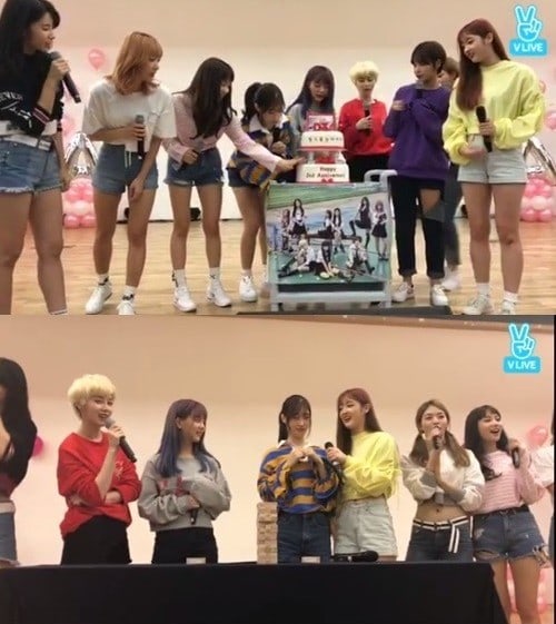Le groupe a mangé un gâteau pour cette date anniversaire, et Huihyeon a fait un voeu en soufflant les bougies, celui d’arriver en première place (sous-entendu avec leur prochain single). Après cela, les filles ont du jouer au Jenga, et Jung Chaeyeon a du faire des petits gestes mignons. Eunjin a aussi dansé sur “Gashina“, dernier titre solo de la chanteuse Sunmi, laissant les fans impressionnés.