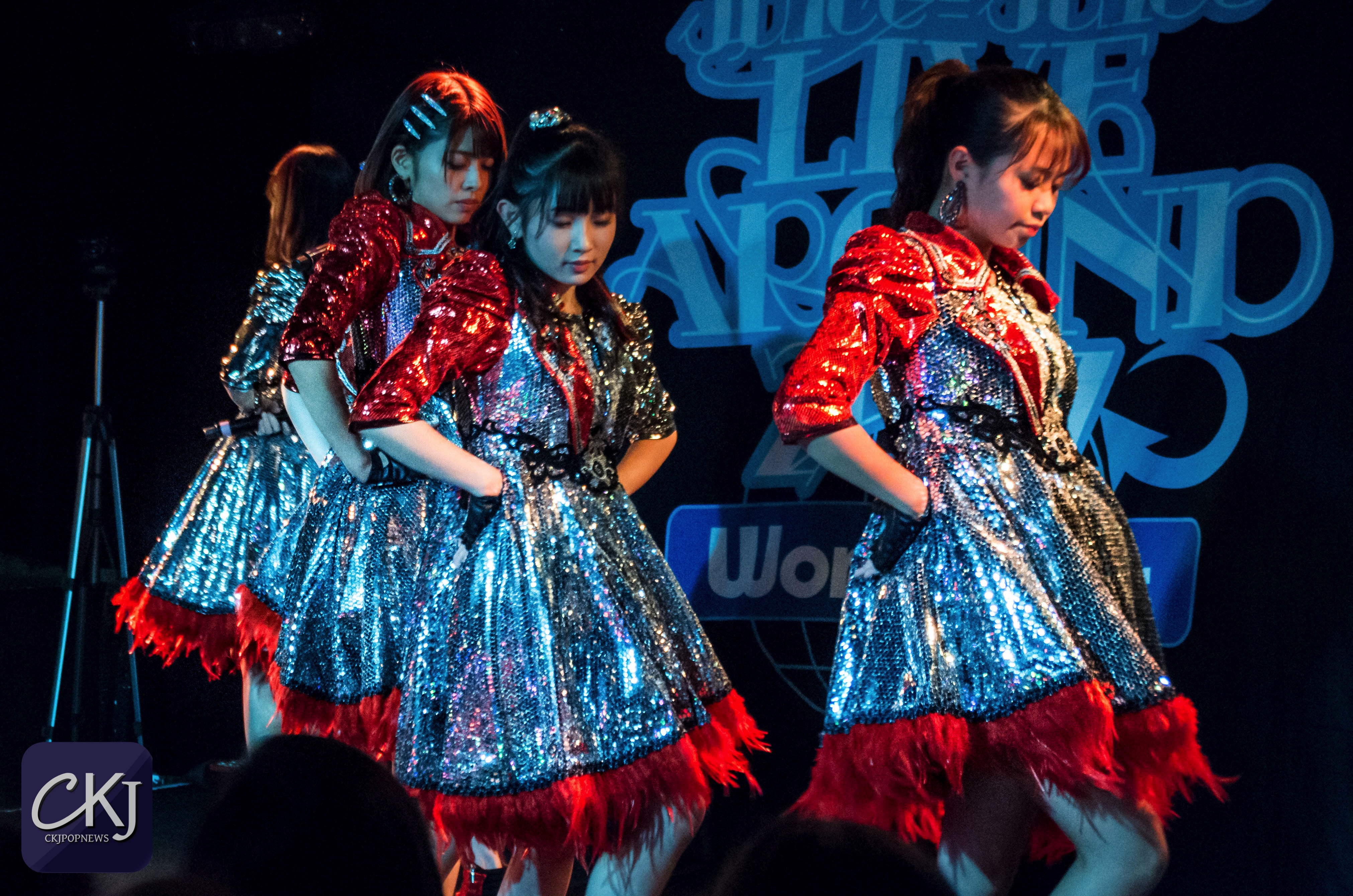 Le groupe à entamé ce show exceptionnel avec le titre festif et exotique “Fiesta! Fiesta!“, dévoilé le mois dernier, qui a mis l’ambiance dès les premières notes au sein de La Boule Noire. Les filles ont ensuite enchainé avec “HADAKANO HADAKANO HADAKANO KISS” (“裸の裸の裸のKISS” pour le titre original), chanson sortie il y a trois ans et demi et qui complète à merveille l’ouverture de la soirée.