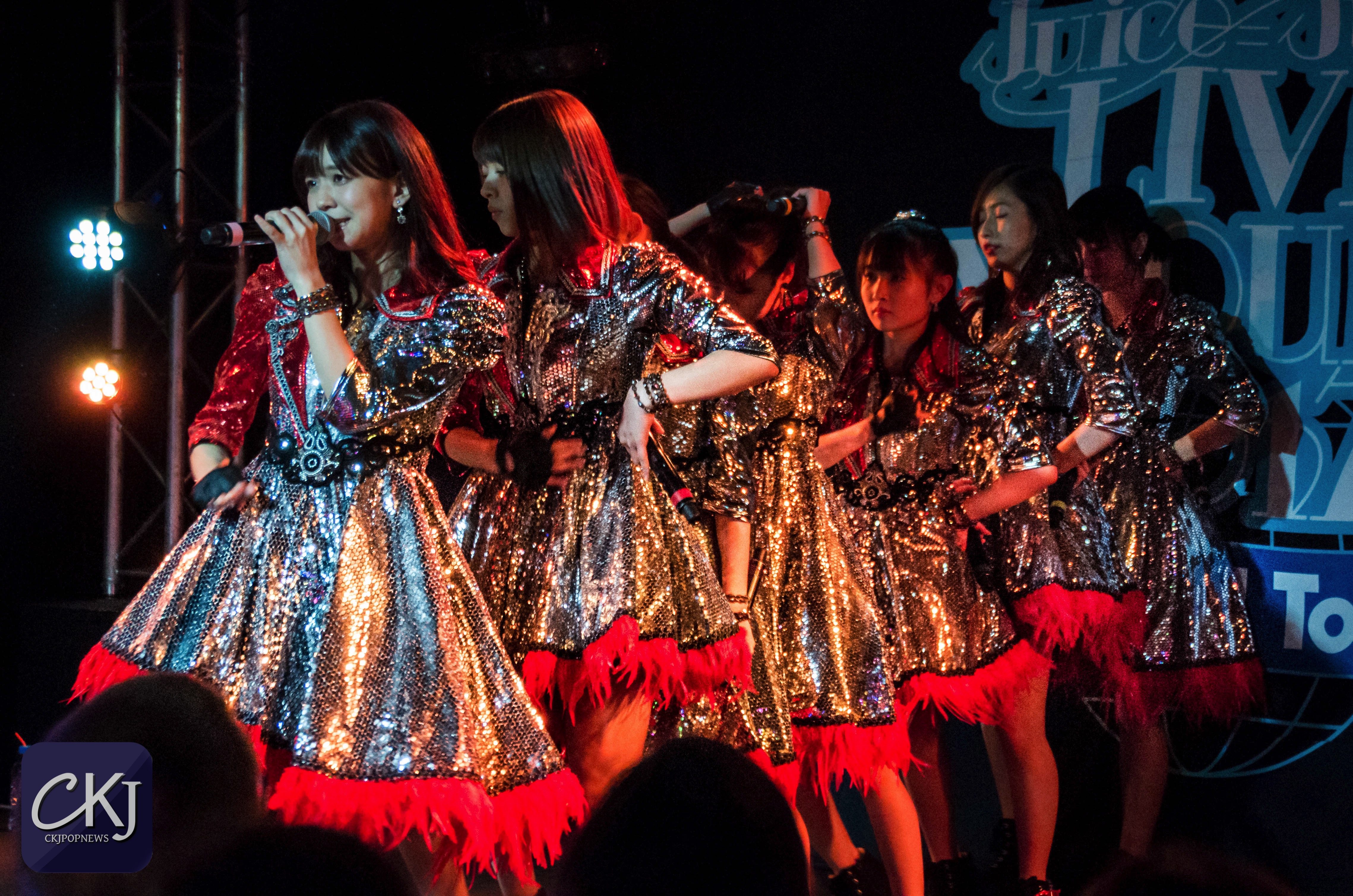 Après ce rapide discours, les acclamations se sont faite de plus en plus fortes, et les Juice=Juice, désormais sept, ne se sont pas fait prier pour entrer en scène le sourire aux lèvres.