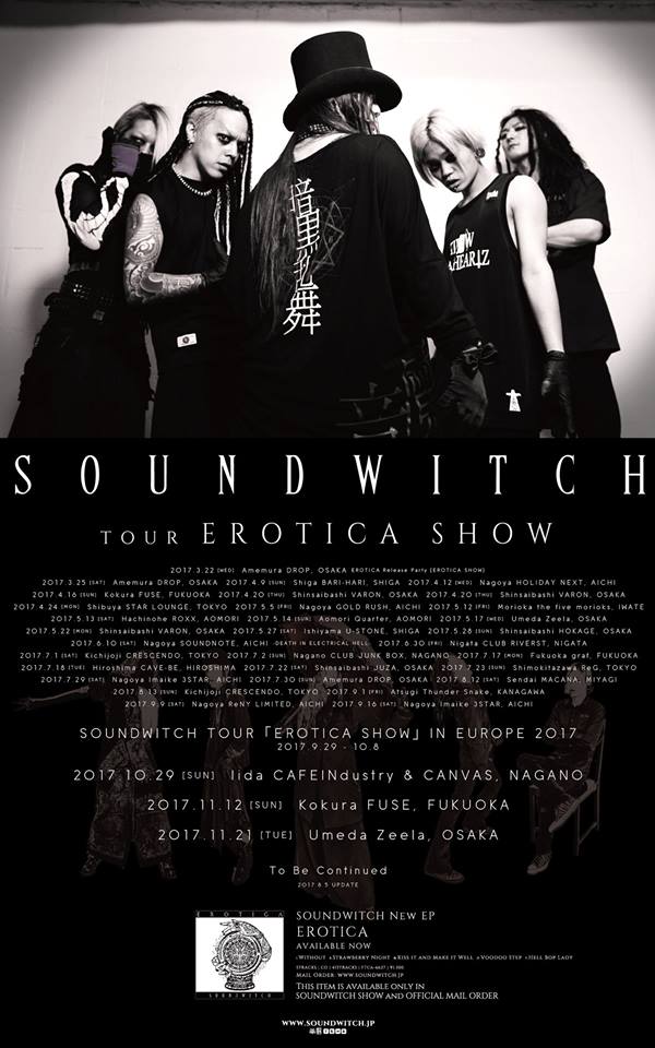 SOUNDWITCH est une formation originaire d’Osaka au Japon. Les paroles, écrites en anglais, sont poétiques et sont interprétées dans un style qui mélange l’industriel, l’électro et le gothique. Depuis un petit changement de line-up en 2013, les filles enchaînent plus de 70 concerts à l’année, et on réussi à attirer l’attention du public un peu partout dans le monde. Cette fois, c’est au tour du public français de les découvrir !