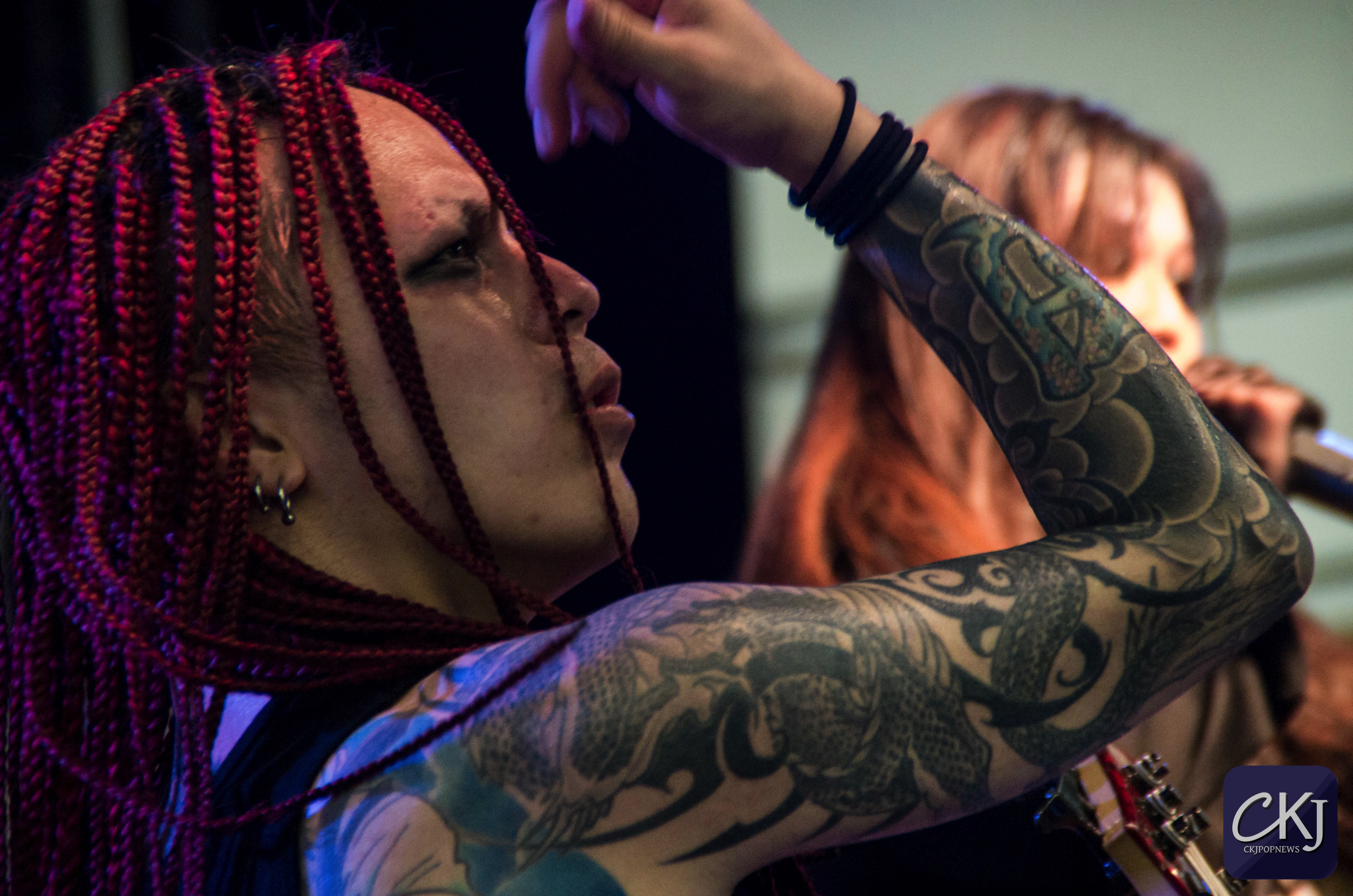 À peine le show commencé, le public a déjà été entrainé dans une ambiance rock et metal typique de ce groupe. Au fur et à mesure du showcase, de plus en plus de personnes sont venues à leur rencontre devant la scène, de même pour les applaudissements qui se sont fait nombreux ; tout ce bruit et cet engouement général a d’ailleurs contribué à attirer encore plus de curieux dans ce secteur du Parc des Expositions.