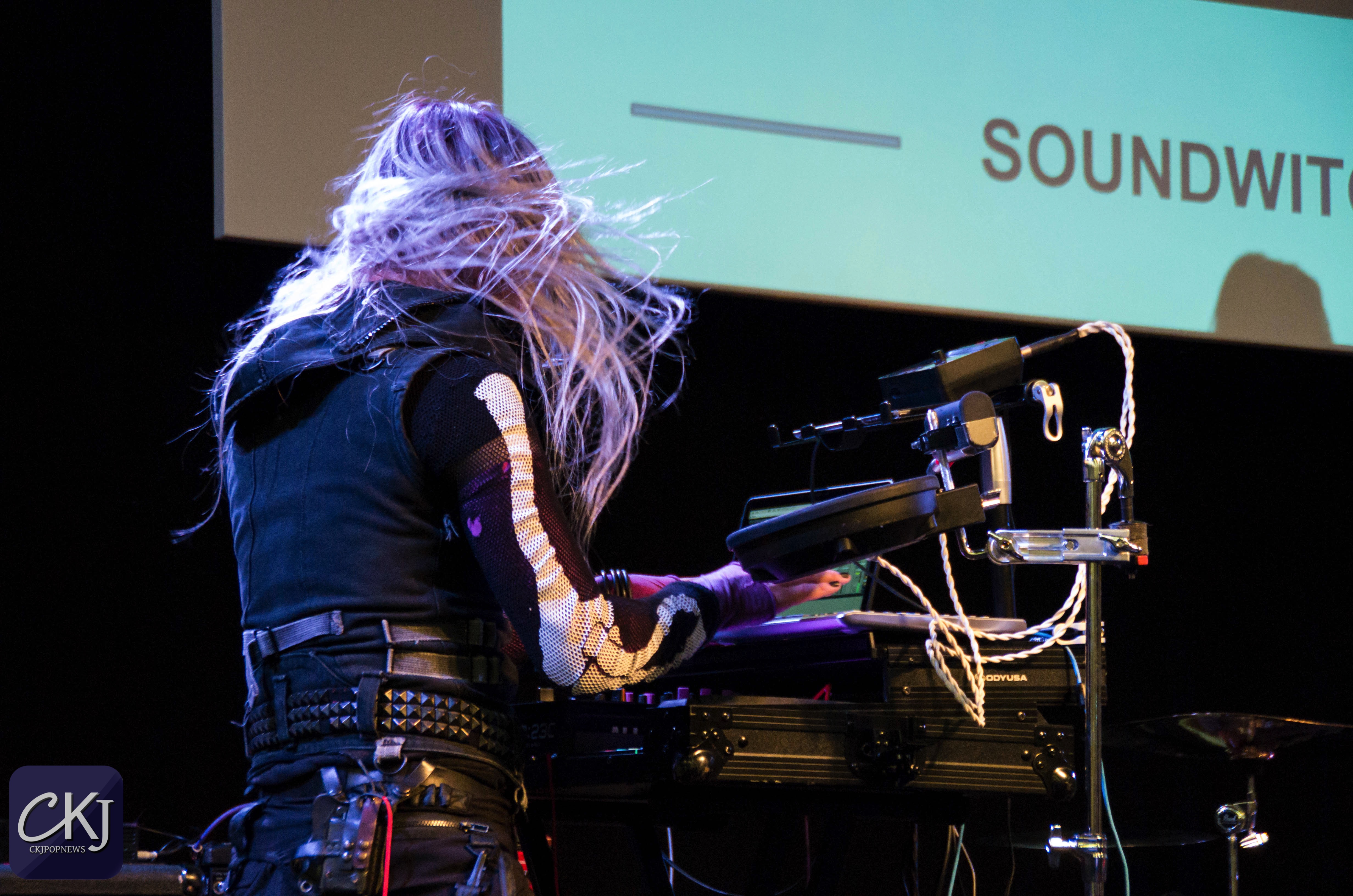 La voix de la chanteuse a réussi à s’imposer malgré les sons durs de la guitare ou bien encore ceux de la batterie qui semblaient dominer au début. Au cours du showcase, les membres du groupe se sont aussi présentés : “Nous sommes les SOUNDWTICH, et nous venons du Japon“. Ils ont aussi bien entendu remercié le public d’être présent à cette première pour eux sur Paris.