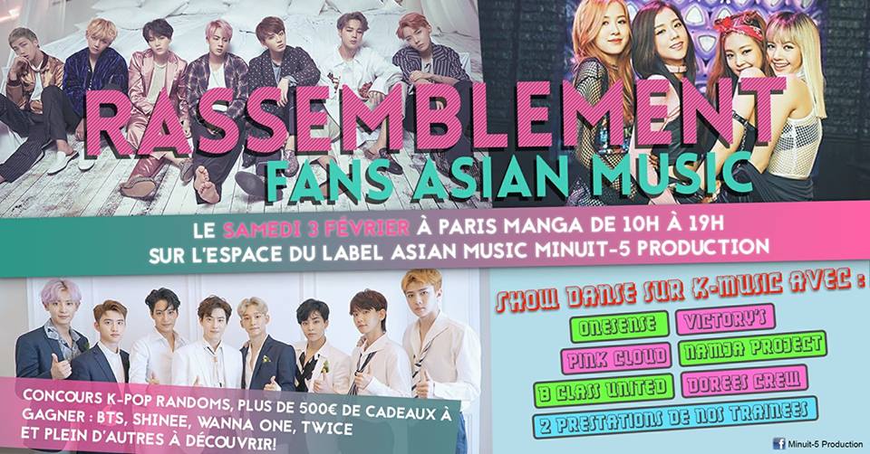 Notre partenaire Minuit-5 Production, premier label de musique asiatique basé en Europe, sera présent à la prochaine édition de Paris Manga ! Le label sera présent le samedi 3 février toute la journée, sur un stand où tous les fans de musique asiatique sont officiellement invités. Au programme, plein d’activités aux couleurs de la musique asiatique, notamment de la J-Pop et de la K-Pop.