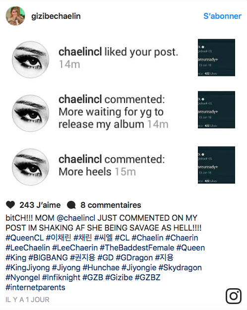 CL a répondu en personne avec son compte et a commenté sur la photo de sa fan ; elle a dit qu’elle attendait que YG sorte son nouvel nouvel album.