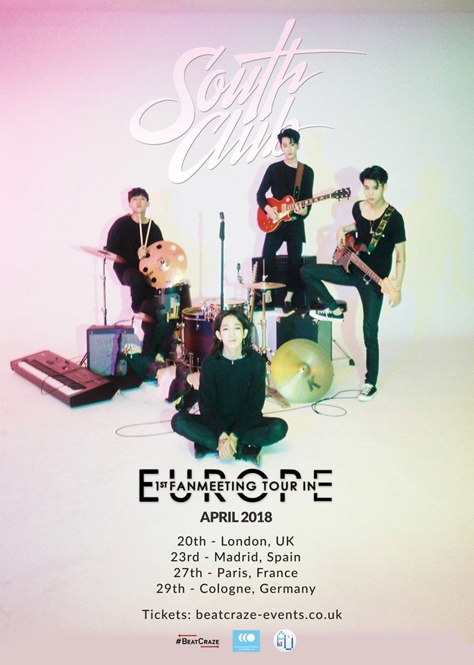 Bonne nouvelle ! Un nouvel évènement en France a été programmée, une toute première tournée européenne pour le groupe de rock South Club, dont une date unique à Paris ! Rappelons que ce groupe s’est formé à l’initiative de Nam Taehyun, ancien membre des WINNER, l’année dernière.