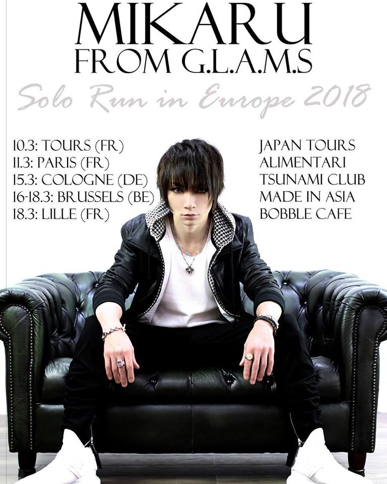 Le chanteur japonais Mikaru, que vous avez pu connaitre dans les groupes Dio et Black Line, ou dans son dernier projet solo G.L.A.M.S, est de retour en concert en France comme on vous l’avait annoncé. Mikaru a d’abord révélé sa venue au Japan Tours Festival le 10 mars, mais il a récemment dévoilé l’affiche de sa nouvelle tournée européenne, sur laquelle on peut voir deux dates supplémentaire en France. Voici l’affiche en question :