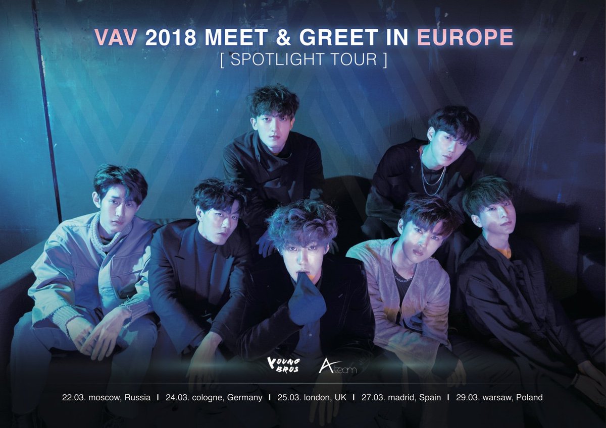 Le groupe de KPOP VAV, ayant par ailleurs fait son comeback récemment avec la chanson Spotlight https://www.c-k-jpopnews.fr/2018/01/29/vav-essaient-de-voler-la-vedette-dans-leur-clip-spotlight/, a annoncé son passage en Europe pour une tournée de “Meet and Greet”.