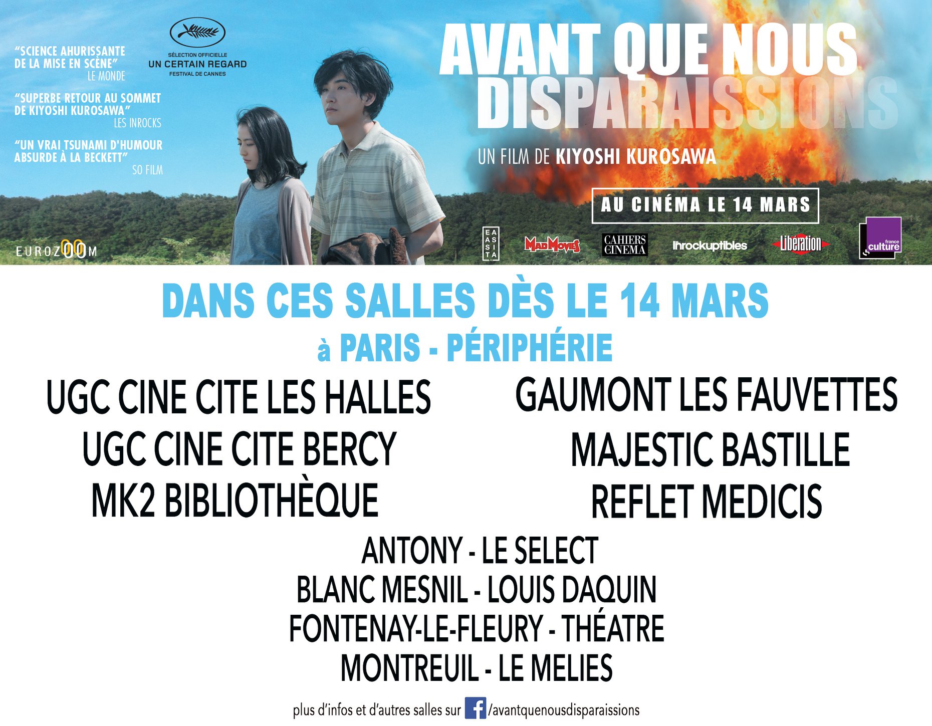 Le film sortira demain, le 14 mars dans les salles françaises, et en particulier dans les salles suivantes :