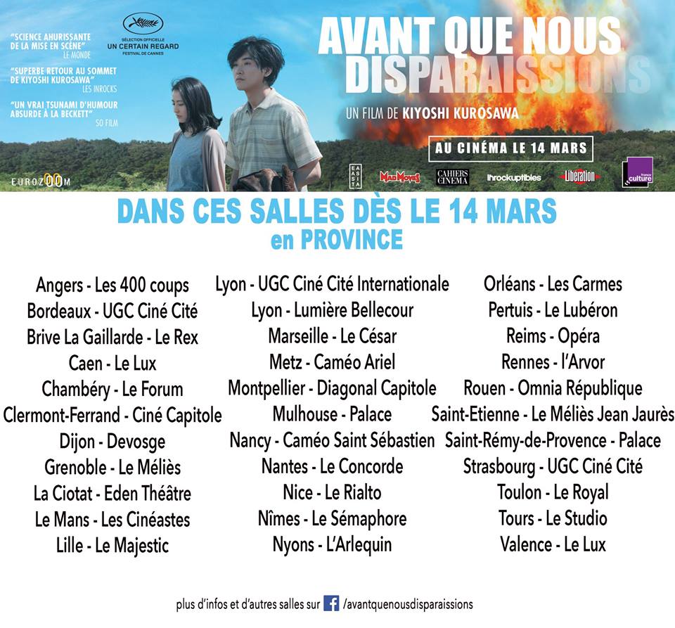 Qu’est-ce qu’il y a à gagner ? Et bien nous mettons en jeu 5 x 2 places pour aller voir le film japonais “Avant que nous disparaissions” près de chez vous !