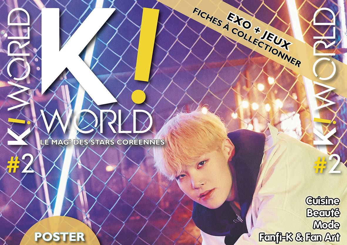 K!world est un nouveau magazine 100% Kpop et K-Dramas qui sort partout en France une fois tous les deux mois avec des exclues venues directement de Corée grâce à des reporters sur place ! On y trouve des interviews d’Idols, des dossiers spécial Dramas, une rubrique K-Beauty, des recettes coréennes, des articles mode, des jeux, du FanArt. L’objectif est aussi de faire le pont entre les deux cultures grâce à des petits articles sur les traditions sud-coréennes ou encore une page dédiée à la langue coréenne.