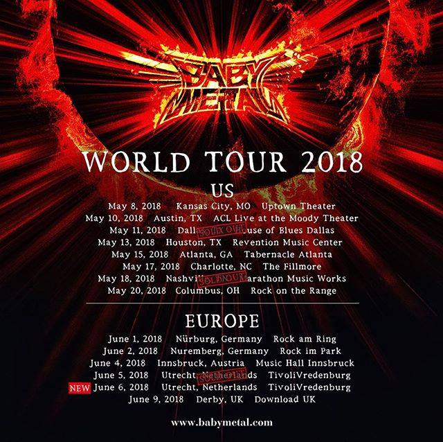 Pour leur nouvelle tournée mondiale, les filles ont annoncé un bon nombre de dates américaines, et quelques unes en Europe, mais surtout ciblées sur certains pays à l’occasion de nos chers festivals estivaux. Si vous souhaitez partir en expédition pour aller les voir dans un autre pays d’Europe, ce sera possible en Allemagne au Rock am Ring (Nürburg et Nuremberg), en Autriche à Innsbruck, aux Pays-Bas à Utrecht (2 dates) et enfin au Download Festival de Derby (Royaume-Uni).